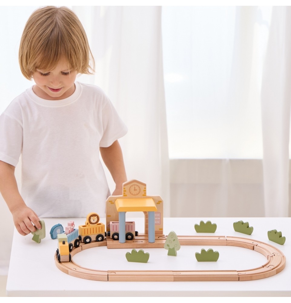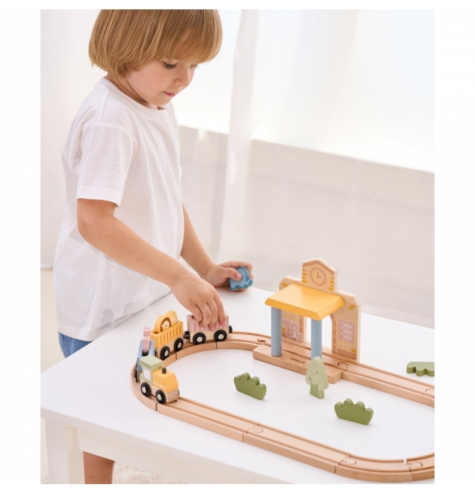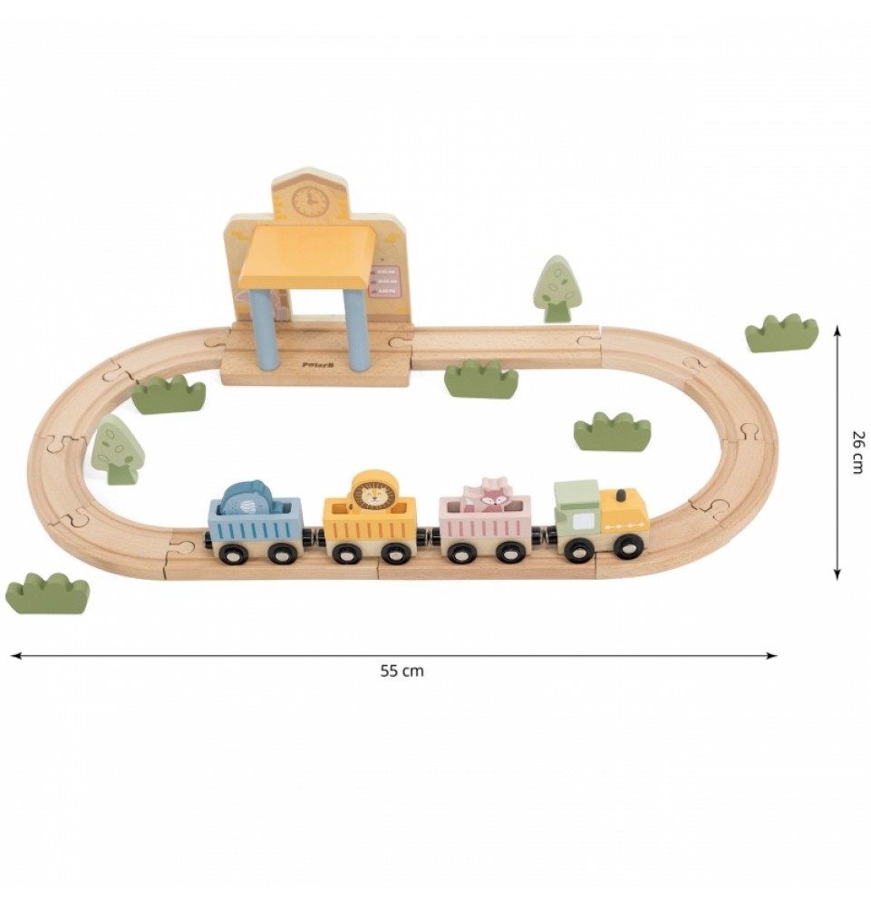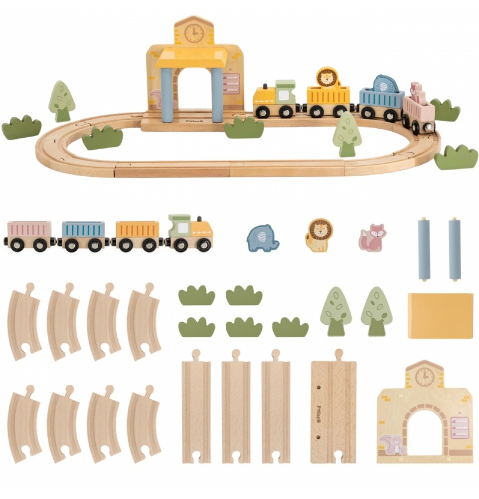 „PolarB“ medinis traukinių rinkinys (30 dalių) – puikus pasirinkimas mažiesiems traukinių entuziastams! Jį sudaro 30 dalių, įskaitant įvairius bėgius, interaktyvią stotį ir priedus, leidžiančius vaikams kurti savo žaidimo scenarijus. Pridedamas vadovas leidžia lengvai sukurti realistišką traukinių stoties aplinką. Magnetiniu būdu aktyvuojama garso funkcija, kuri įsijungia traukiniui pravažiuojant pro stotį, daro žaidimą dar įdomesnį. Medinės dalys yra tvirtos ir patvarios, o jų universalumas skatina vaikus leistis į nevaržomą ir kūrybišką žaidimą.