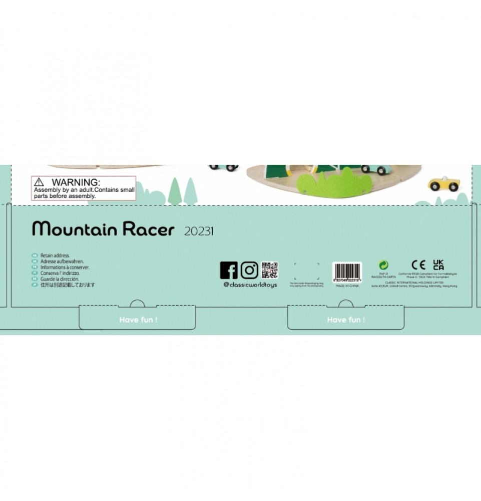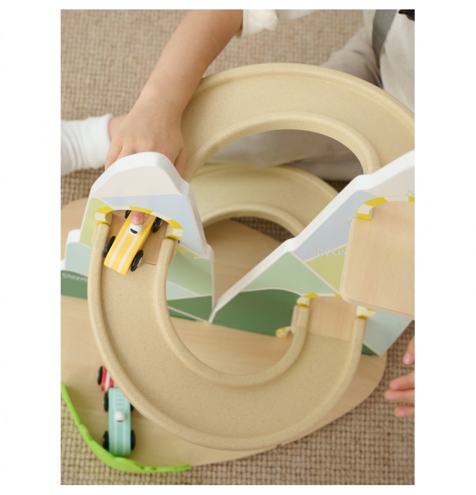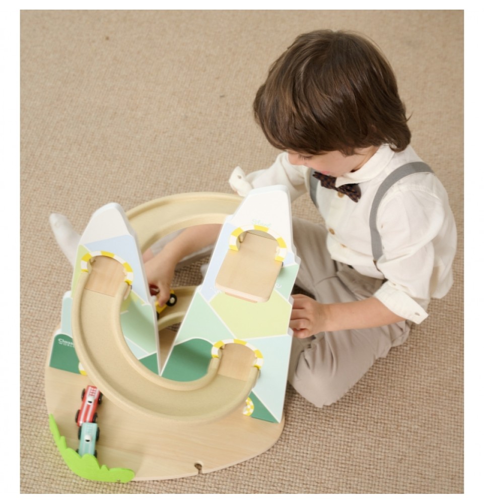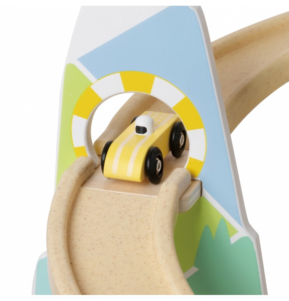 Medinė lenktynių trasa iš „Classic World“ – tai unikalus žaislas, nukelsiantis vaikus į lenktynių azarto kupiną pasaulį! Įkvėpta gražaus kalnų kraštovaizdžio, unikali dviejų kalnų forma pradžiugins kiekvieną vaiką, o kruopščiai pagaminta medinė konstrukcija ir pastelinės spalvos pritrauks akį. Rinkinį sudaro trys spalvingi automobiliai, kurie varžysis vingiuotoje trasoje. Dėl saugaus, be briaunų dizaino trasa puikiai tinka net ir patiems mažiausiems. Tai žaidimas, kuris ne tik linksmina, bet ir lavina loginį mąstymą, padeda lavinti akių ir rankų koordinaciją bei skatina konkurenciją sveikoje atmosferoje.