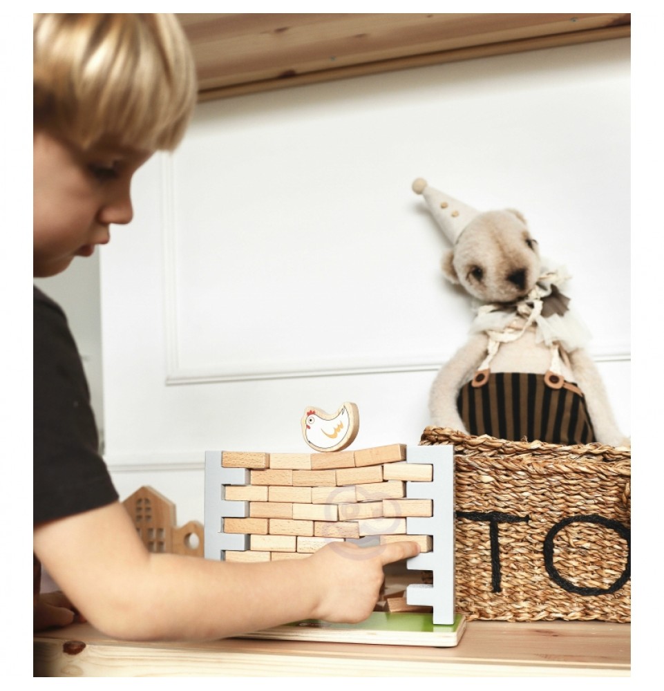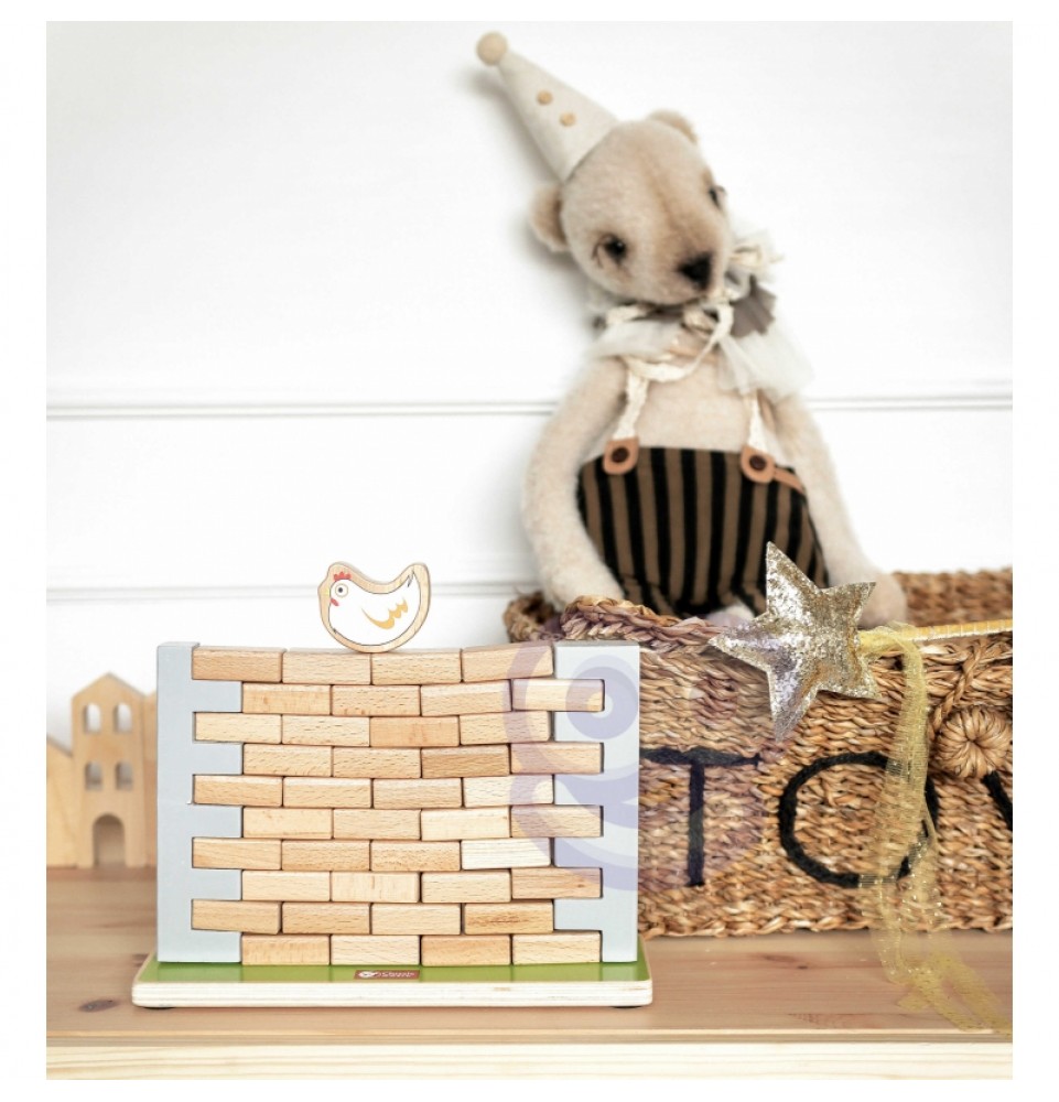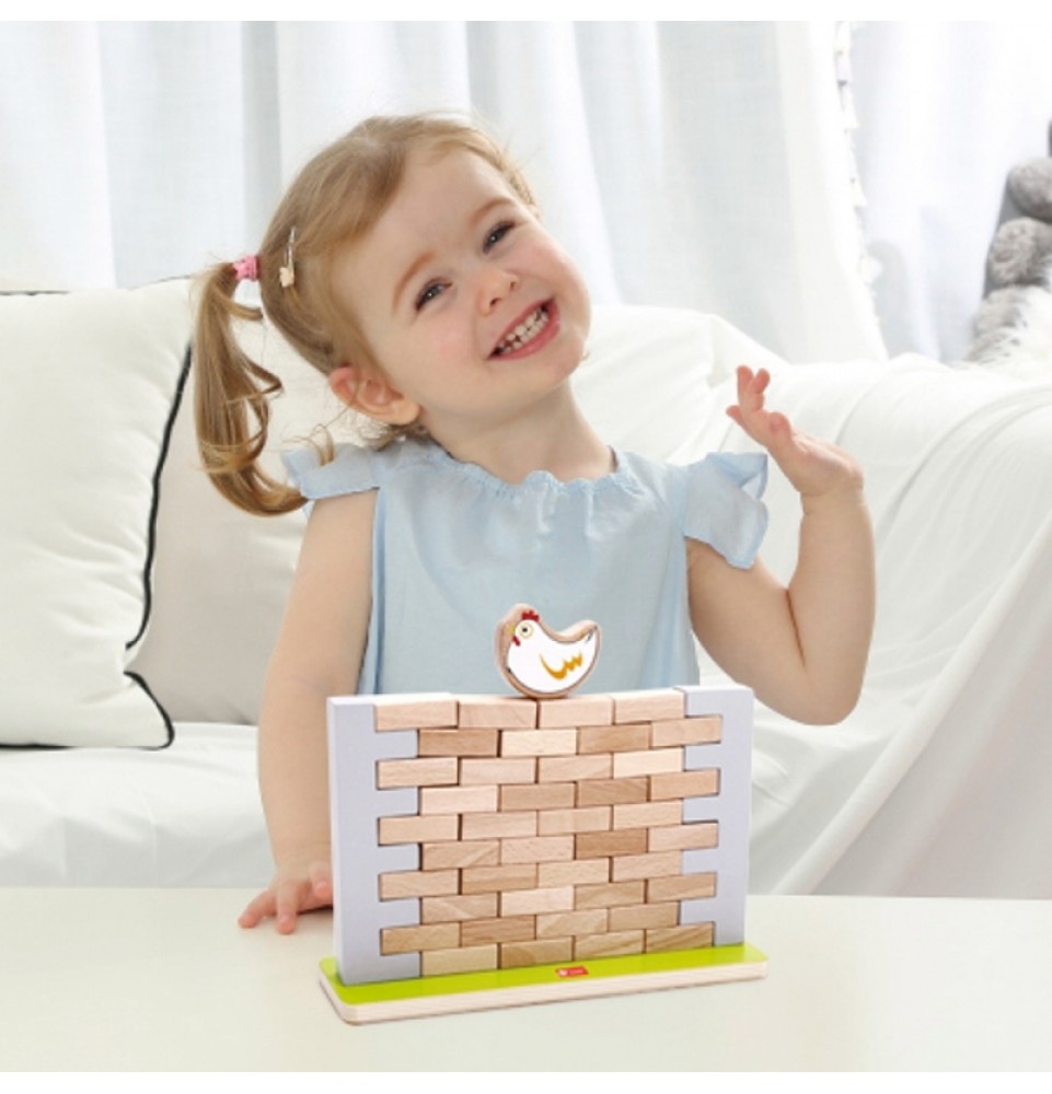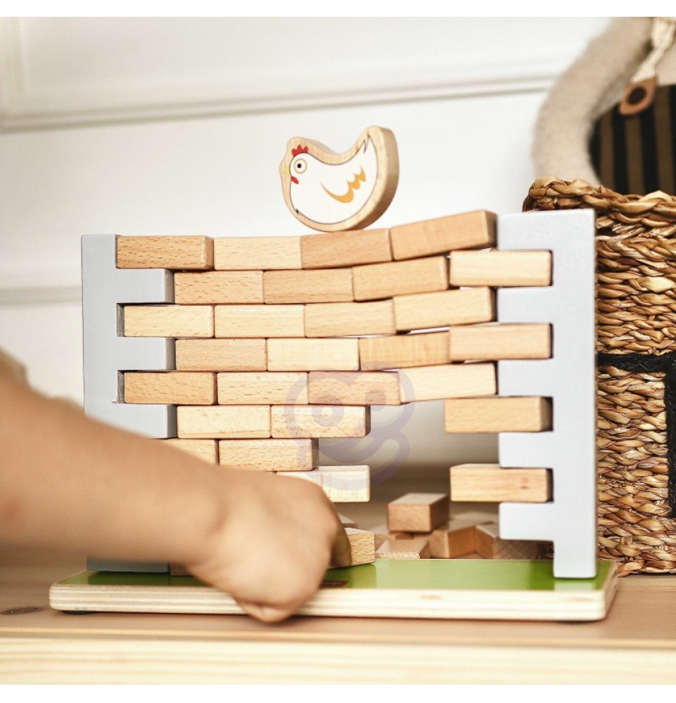 Puikus medinis žaidimas visai šeimai iš garsaus „Classic World“ prekės ženklo. Paprastos taisyklės, loginis mąstymas ir pramogos visoms amžiaus grupėms – tai pagrindiniai šio žaidimo bruožai. Pastatykite sieną iš specialiai paruoštų kaladėlių. Uždėkite ant viršaus vištą , tada po vieną traukite kaladėles iš sienos. Kai siena sugriūva, žaidimas baigiasi. Žaisdami vaikai mokysis susikaupimo , strategijos ir problemų sprendimo , lavins rankų ir akių koordinaciją .