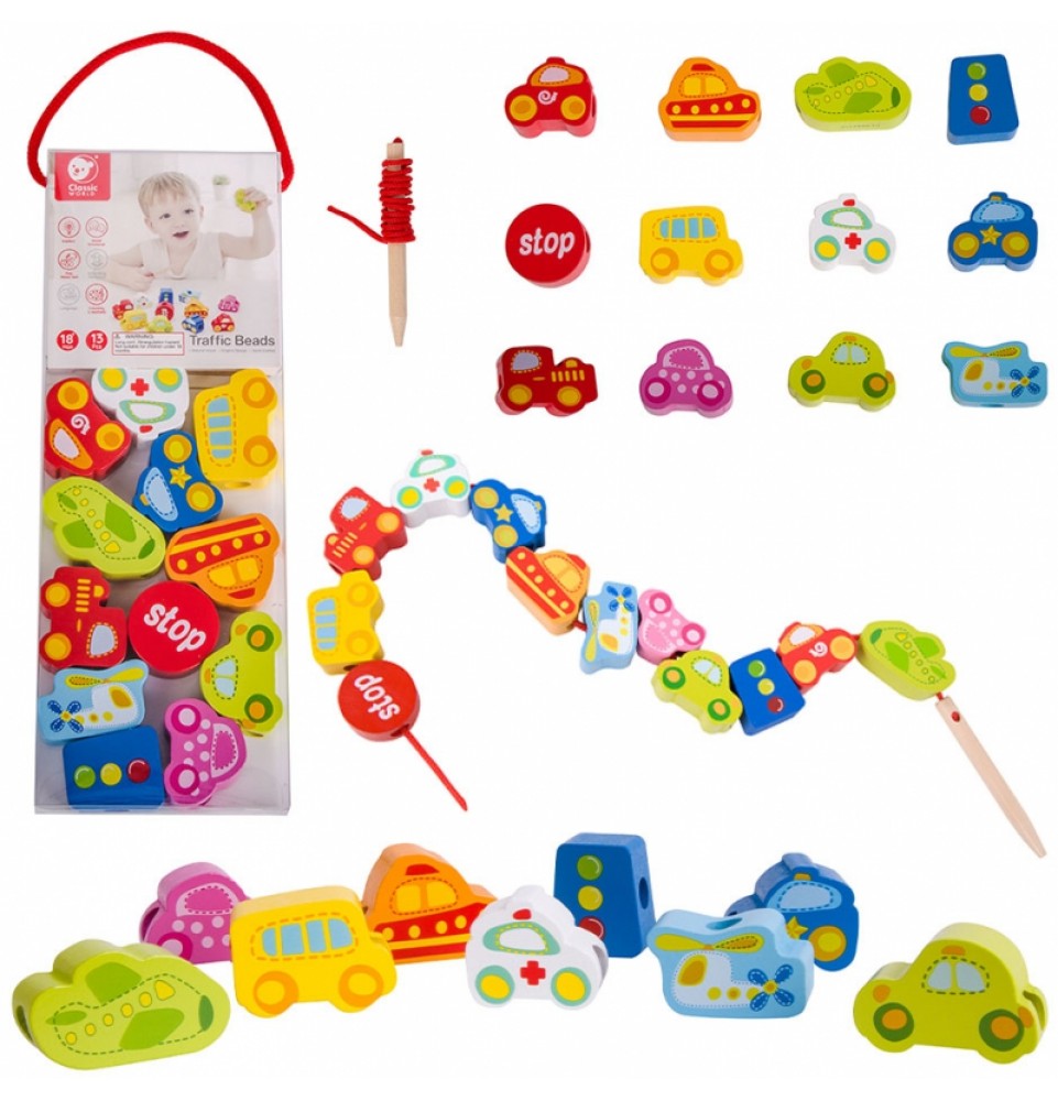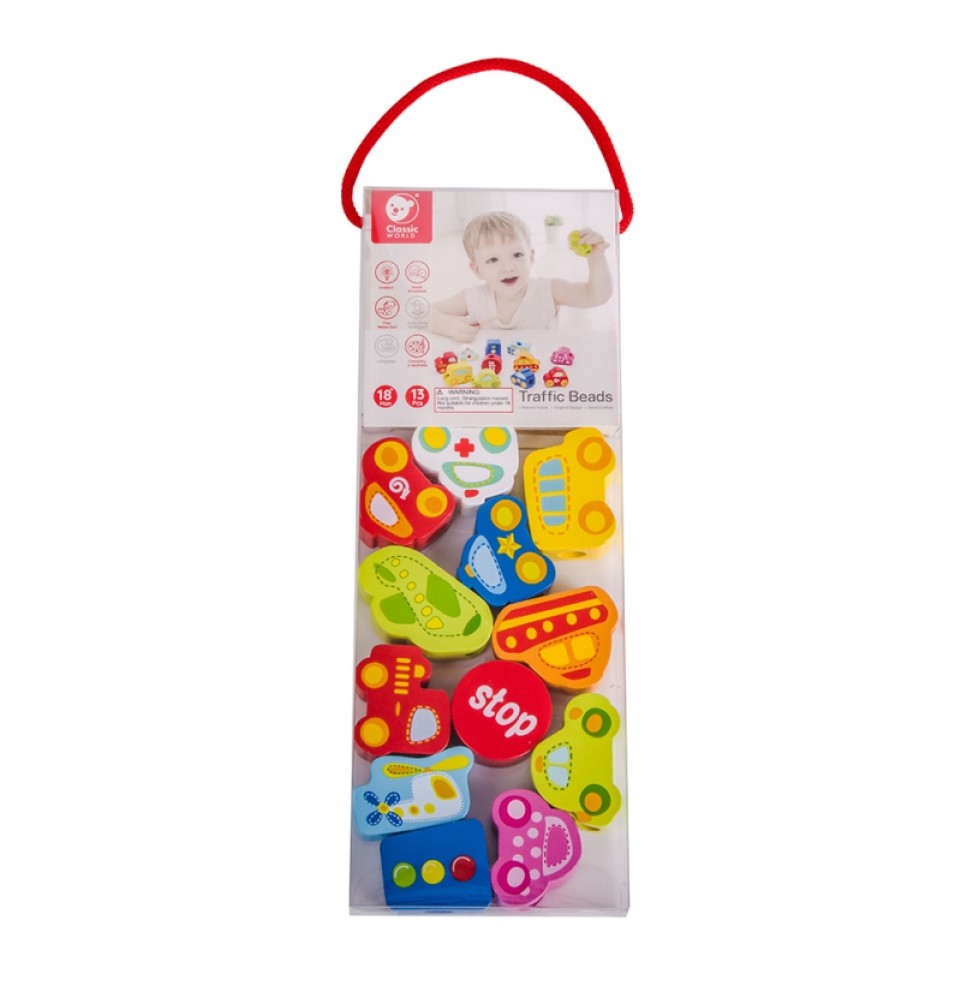 CLASSIC WORLD Mediniai siūlų vėrimo kaladėlės, kelių eismui, 13 vnt.