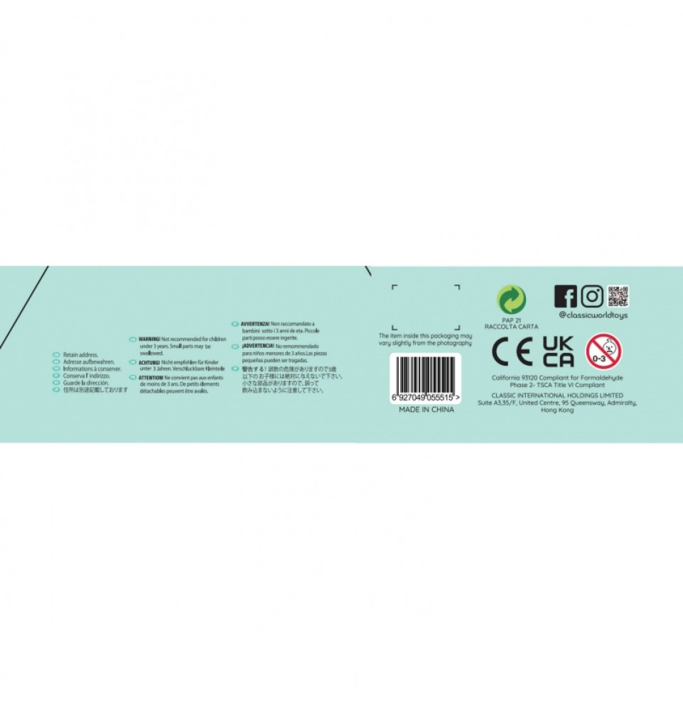 „Classic World“ – tai tarptautiniu mastu pripažintas prekės ženklas, gaminantis aukštos kokybės, saugius ir ekologiškus žaislus vaikams. Nuo pat įmonės įkūrimo pagrindinis tikslas buvo sukurti žaislus, kurie ne tik džiugintų vaikus, bet ir skatintų jų pažinimo džiaugsmą, kūrybiškumą bei lavintų įvairius įgūdžius. Su didžiule aistra ir kruopštumu gaminami „Classic World“ žaislai atitinka aukščiausius tarptautinius kokybės standartus ir yra griežtai tikrinami, kad būtų visiškai saugūs net patiems mažiausiems.
