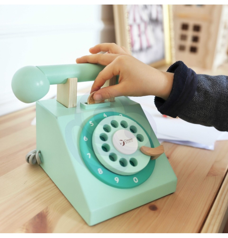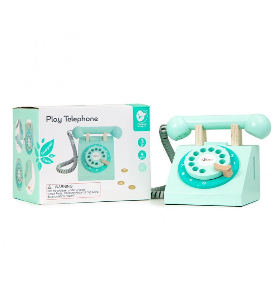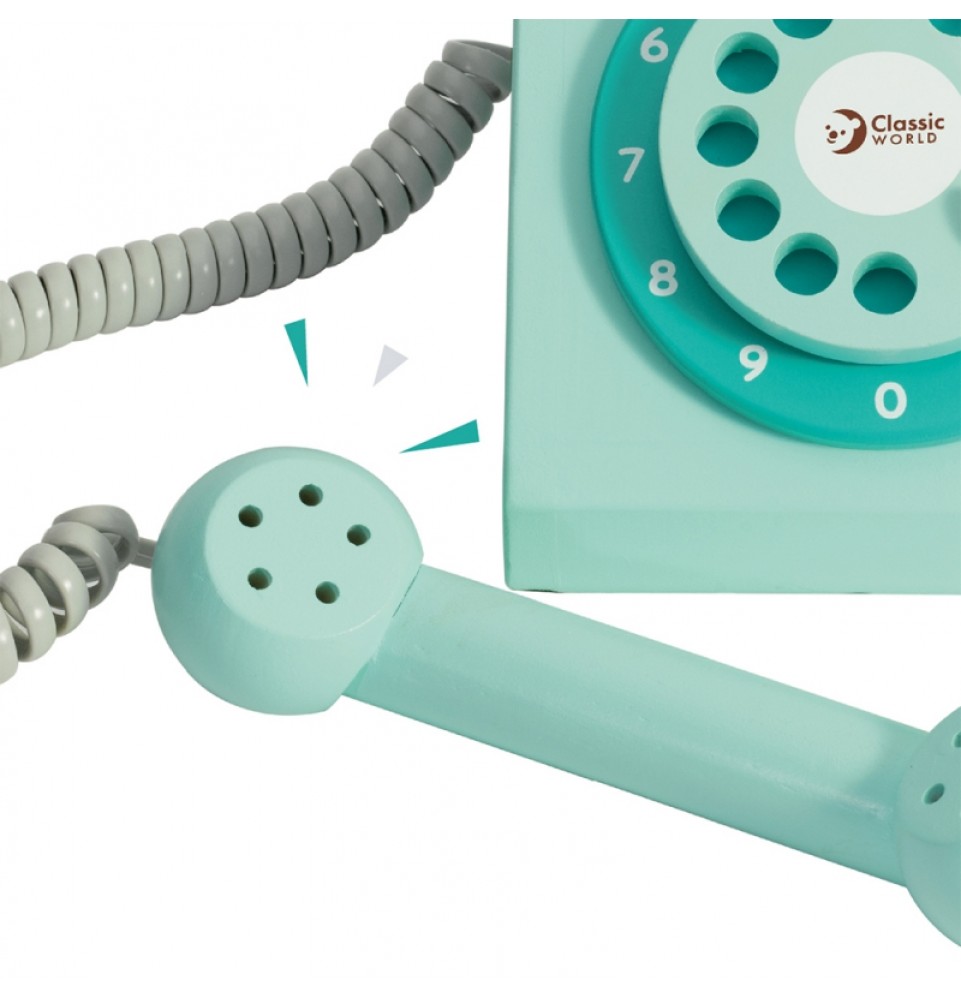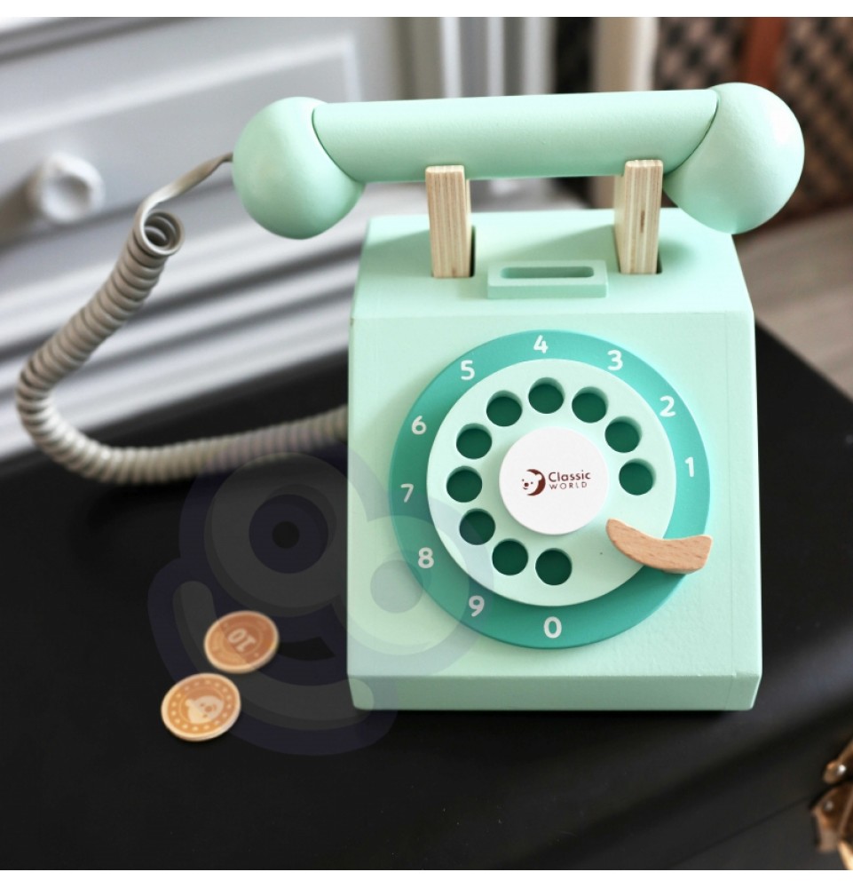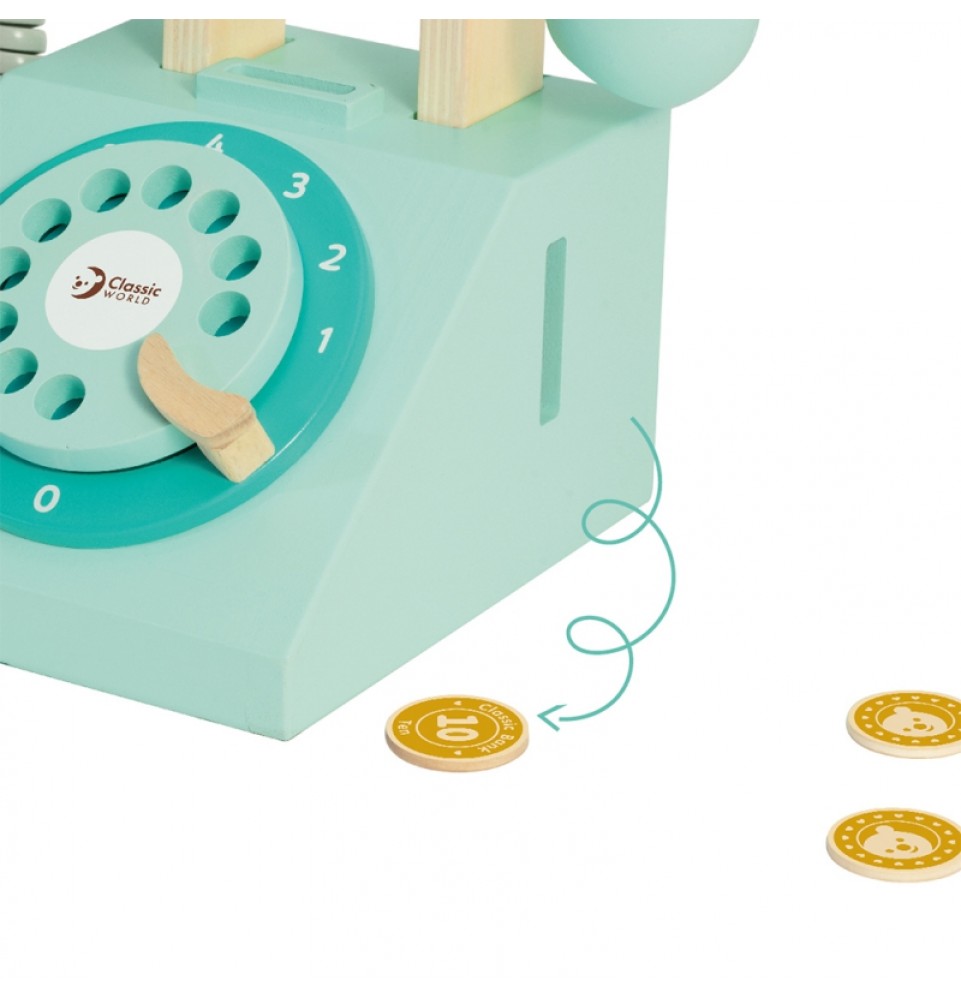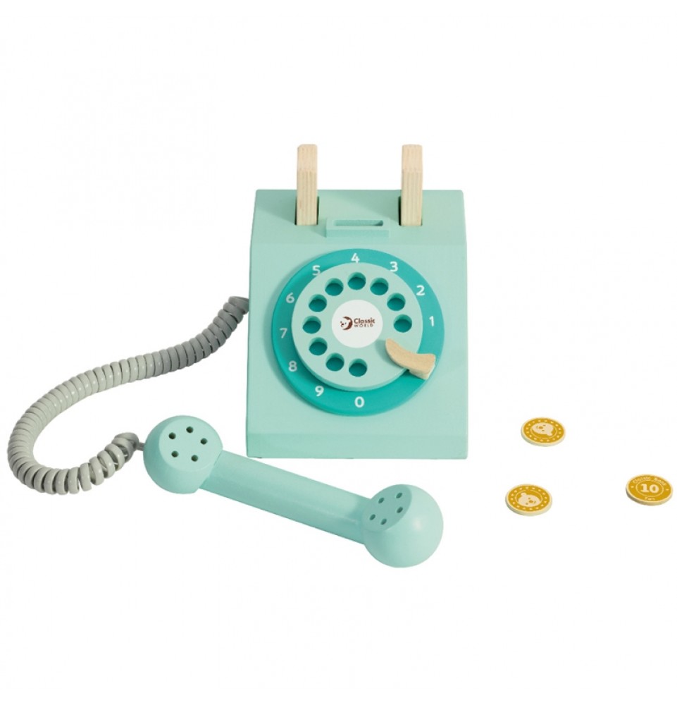 Medinis CLASSIC WORLD laidinio ryšio telefonas – puiki dovanos idėja. Šis telefonas sukurtas vintažiniu stiliumi. Jis moko vaikus dialogo ir lavina jų motorinius įgūdžius. Įmeskite monetą ir paskambinkite savo artimiesiems.