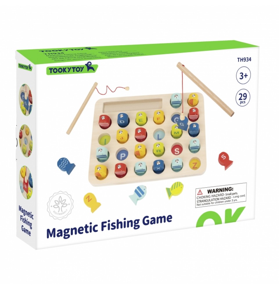 Šis garsaus „Tooky Toy“ prekės ženklo žvejybos rinkinys – puikus būdas mokytis žaidžiant. Šis įgūdžius lavinantis šeimos žaidimas suteiks daug juoko ir džiaugsmo, tuo pačiu pagerins refleksus ir susikaupimą . Kiekviena žuvis turi raidę , todėl jūsų mažylis išmoks savo raides. Žuvų skyreliai lentoje taip pat turi raides, todėl jūsų vaikui lengviau mokytis abėcėlės . Esame įsitikinę, kad šis klasikinis žaidimas sužadins jaudulį ir išmokys vaikus sveikos konkurencijos principų . Rinkinį sudaro dvi meškerės su magnetais žuvims gaudyti. Rinkinys pagamintas iš aukštos kokybės medžiagų .