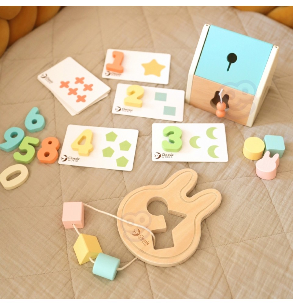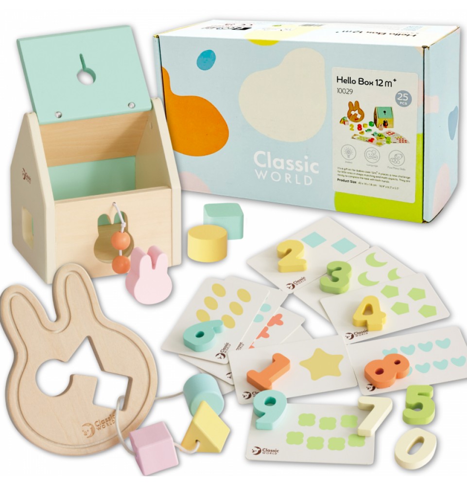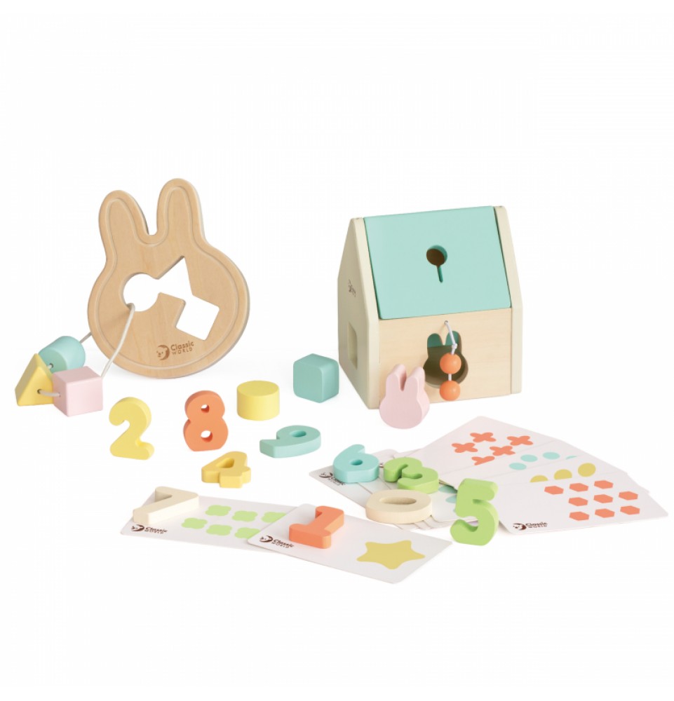 Ši unikali žinomo „CLASSIC WORLD“ prekės ženklo mokymosi dėžutė yra puiki dovanų rinkinys kiekvienam mažyliui! Ji žadina natūralų vaiko smalsumą, siūlydama įvairių ir įtraukiančių žaislų. Rinkinį sudaro rūšiuoklė, skaičiavimo dėlionės, konstruktoriai ir žavingas triušio formos siūlų vėrimo žaislas . Tai pilnas rinkinys, kuris vienoje dėžutėje padeda visapusiškai vystytis vaikui, lavina smulkiąją motoriką ir vaizdinį tyrinėjimą .