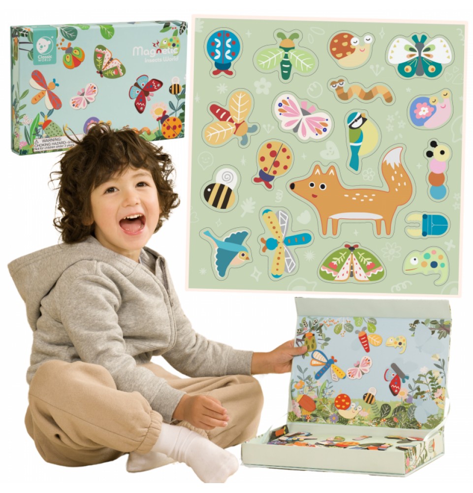 KLASIKINIS PASAULIO dėlionė – šis magnetinis dėlionių rinkinys padeda vaikams mokytis ir atpažinti pievoje randamų gyvūnų įvairovę ! Vaikai gali išdėlioti korteles ant magnetinės lentos su kiekvienu iš 18 gyvūnų ir kurti savo istorijas . Žaidimas lavins jų vaizduotę , motorinius įgūdžius ir stebėjimo įgūdžius . Puikus būdas praleisti laiką namuose ir išmokti naujų dalykų.