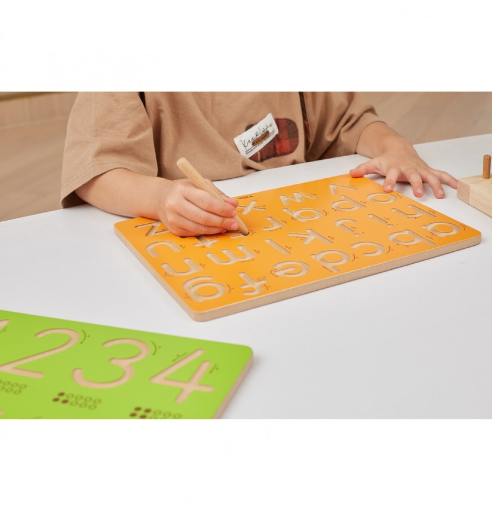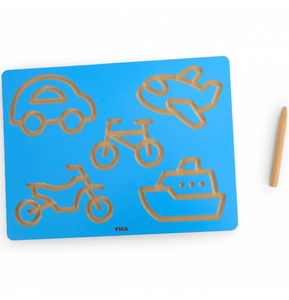 VIGA piešimo lenta – puikus būdas vaikams lavinti ranką prieš mokantis rašyti . Subtiliai išgraviruoti ir išlenkti grioveliai idealiai tinka vaikams valdyti rankų judesius ir lavinti raumenų atmintį kartojant piešimą. Lenta yra kompaktiško dydžio , todėl vaikai gali ją laikyti ir naudoti ant stalo. Žaisdami vaikai mokosi judesių, reikalingų piešimui ir rašymui , lavina sklandumą ir rankų bei akių koordinaciją.