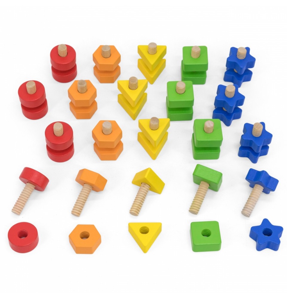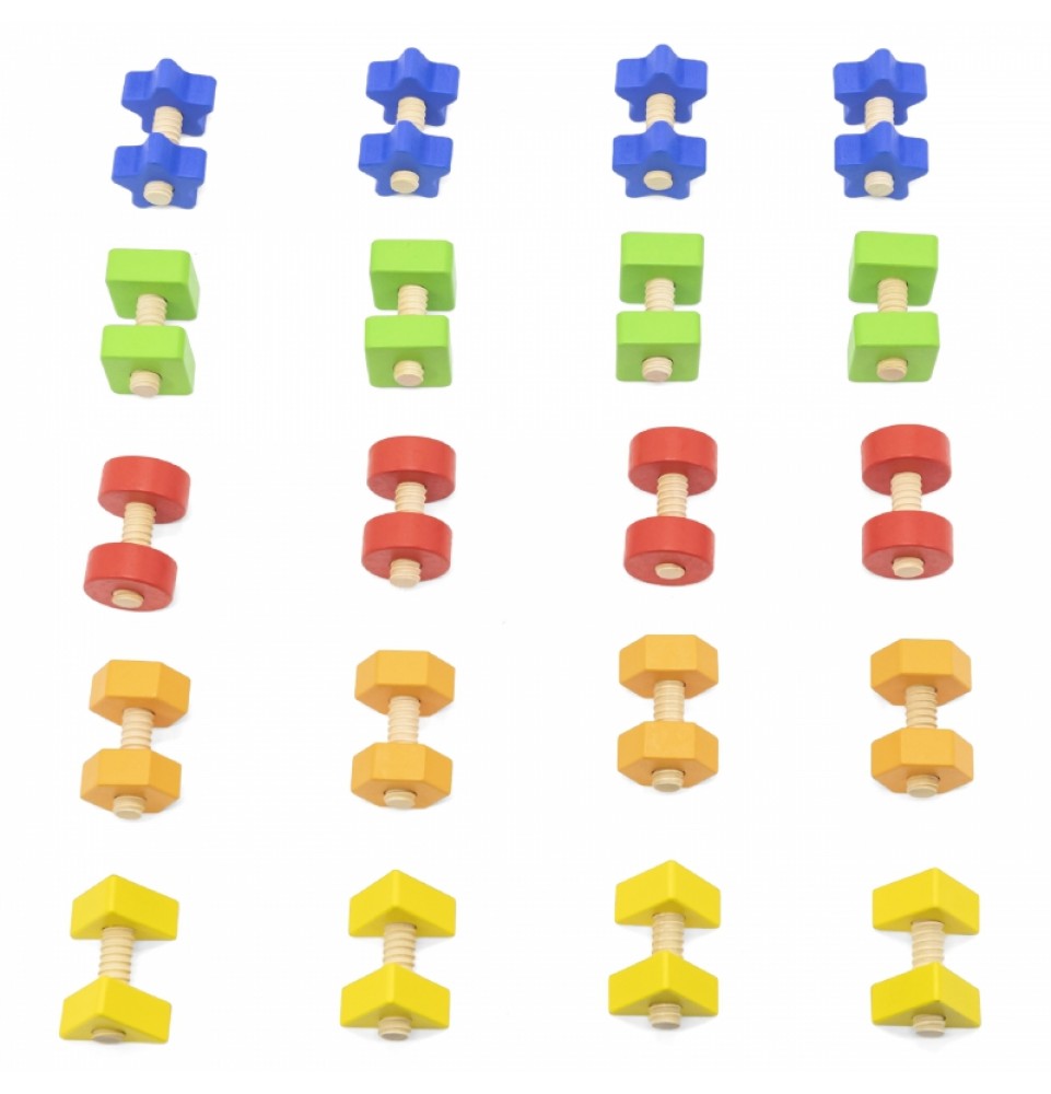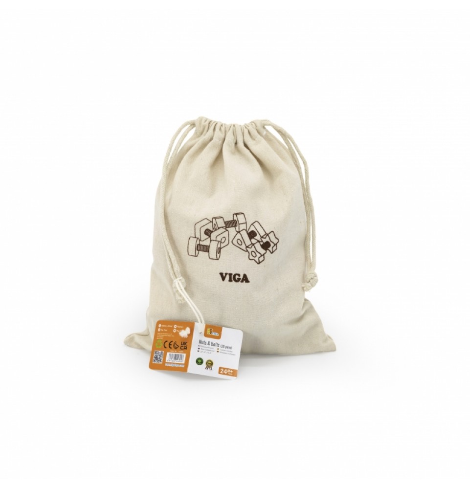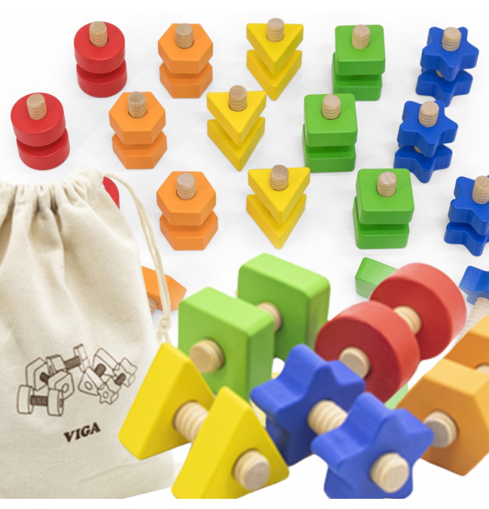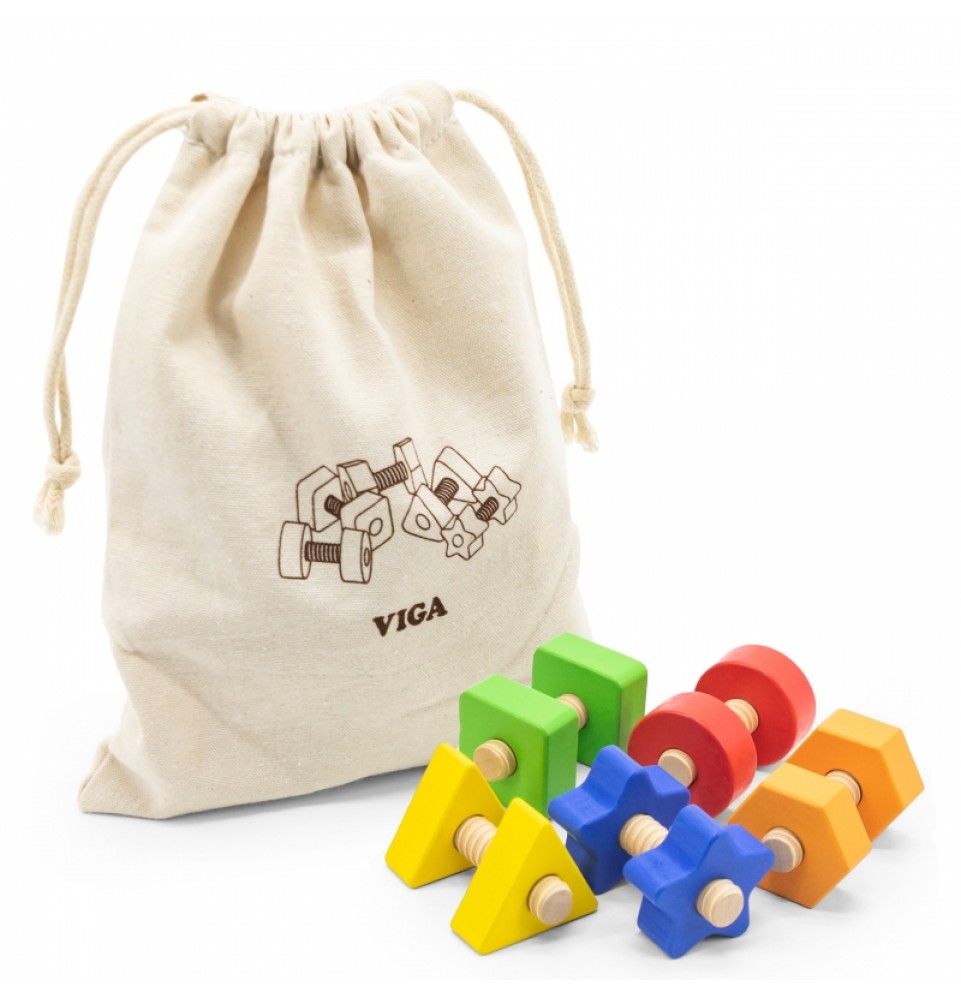 „Veržlės ir varžtai“ yra VIGA rankų miklumą lavinantis žaislas, kuriame reikia sukti ir atsukti spalvingas figūras. Vaikams labai smagu derinti ir maišyti detales, tuo pačiu mokant juos skaičiuoti , atpažinti spalvas ir formas . Sukimas ir atsukimas lavins jų rankų miklumą ir regimąją koordinaciją. Rinkinį sudaro 40 detalių, 20 porų veržlių ir varžtų 5 ryškių spalvų ir formų bei medvilninis maišelis patogiam laikymui.