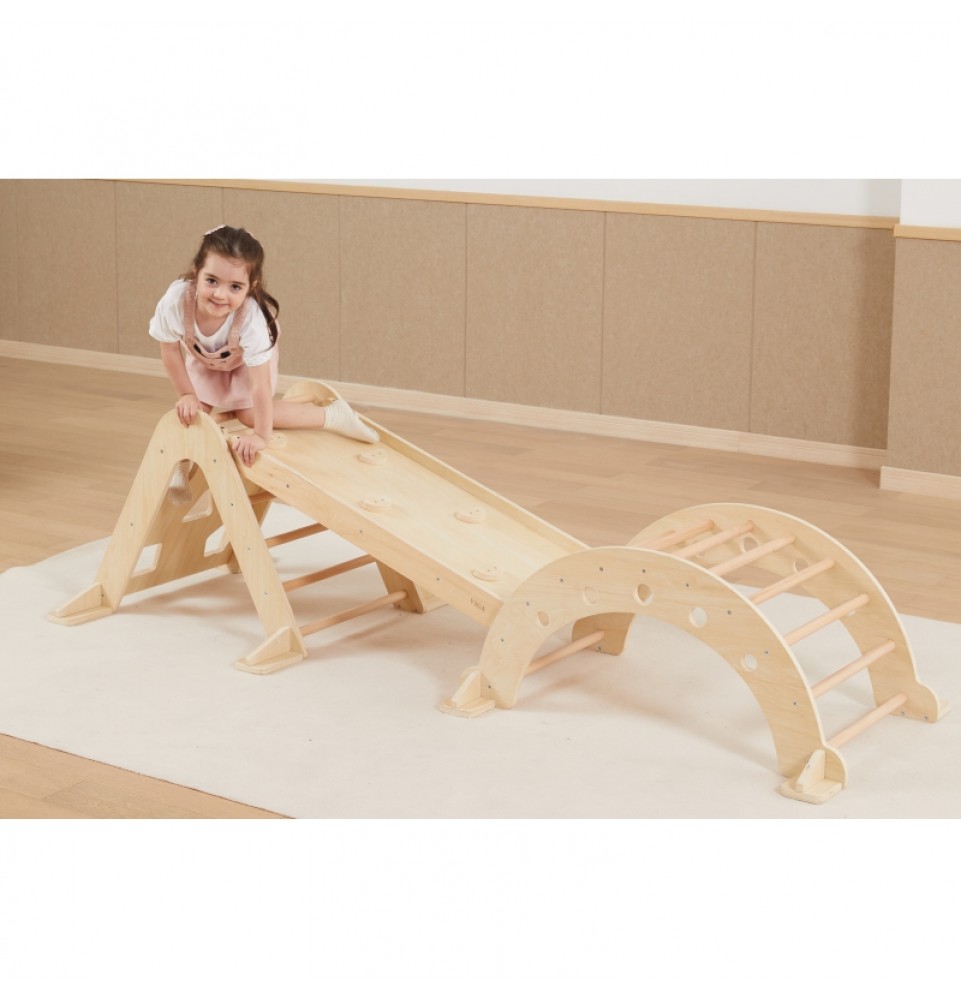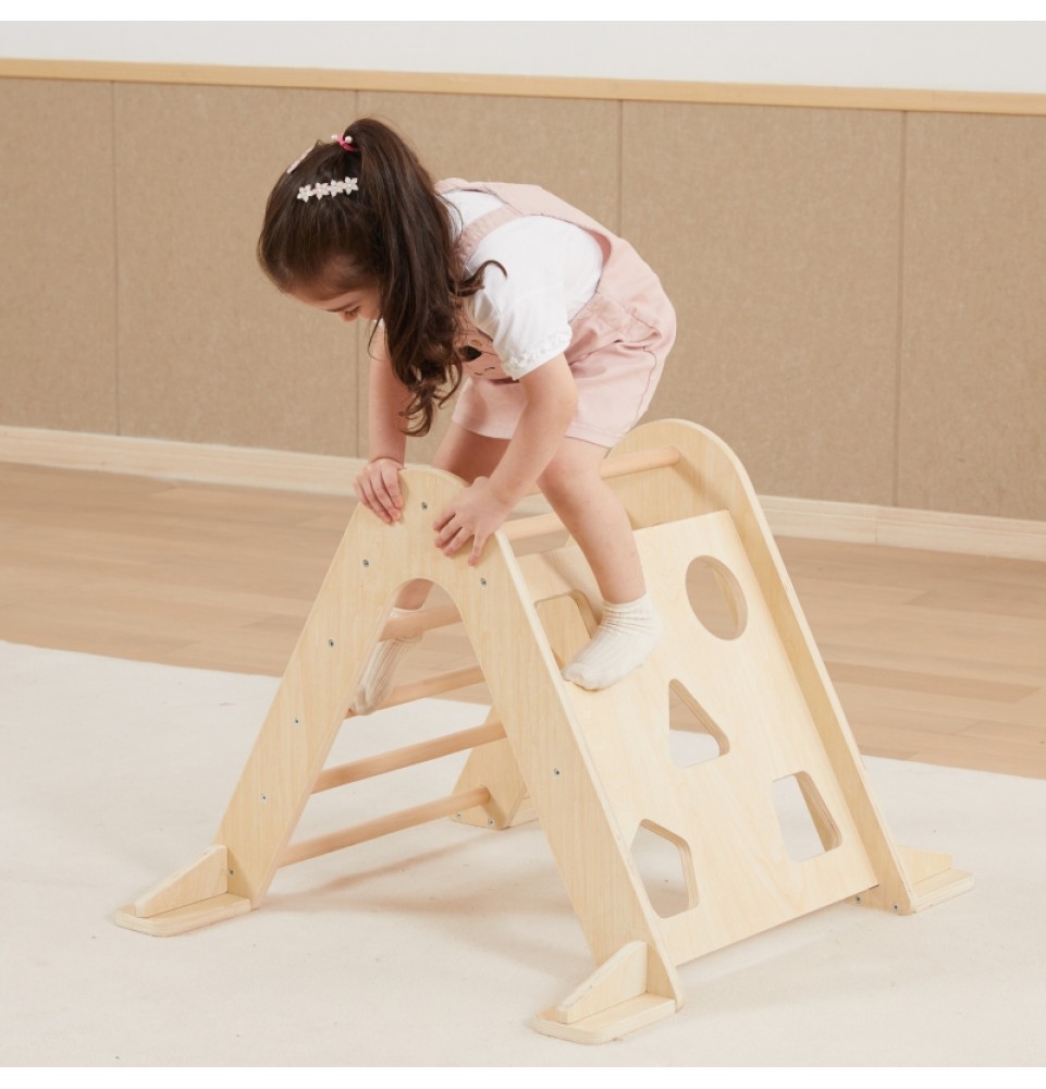 Pikler laipiojimo trikampis yra esminis namų žaidimų aikštelės elementas, atitinkantis Montessori filosofiją. Lipdami vaikai lavina stambiąją motoriką, pusiausvyros pojūtį ir gerina kūno koordinaciją. Lipti kopėčiomis turėtų lydėti suaugęs asmuo. Vienoje pusėje vaikai ras klasikines kopėčias , o kitoje – sienelę su įvairiomis laipiojimo angomis . Kaip papildomas priedas galima įsigyti medinę čiuožyklą (44709), kurią galima apversti ir naudoti kaip papildomą sienelę, arba ją galima naudoti laipiojimo trikampiui sujungti su supamąja kėdute (44708).