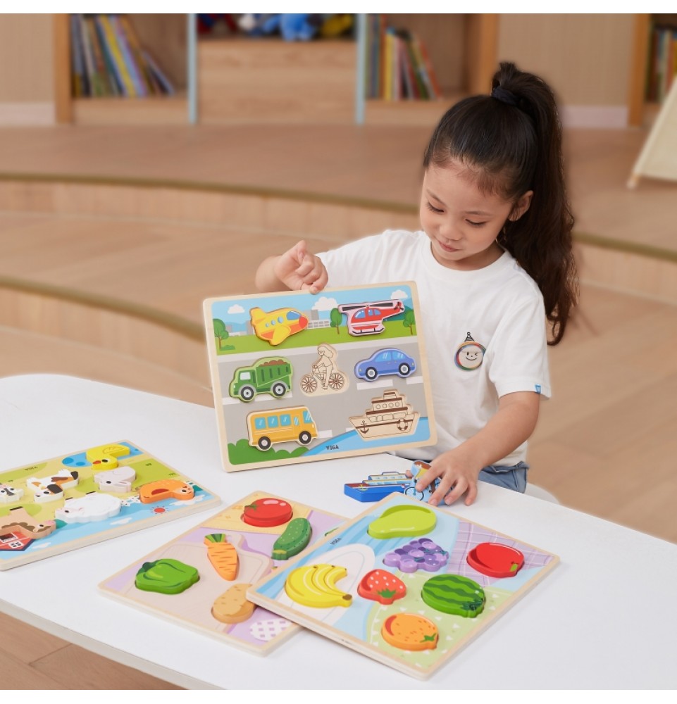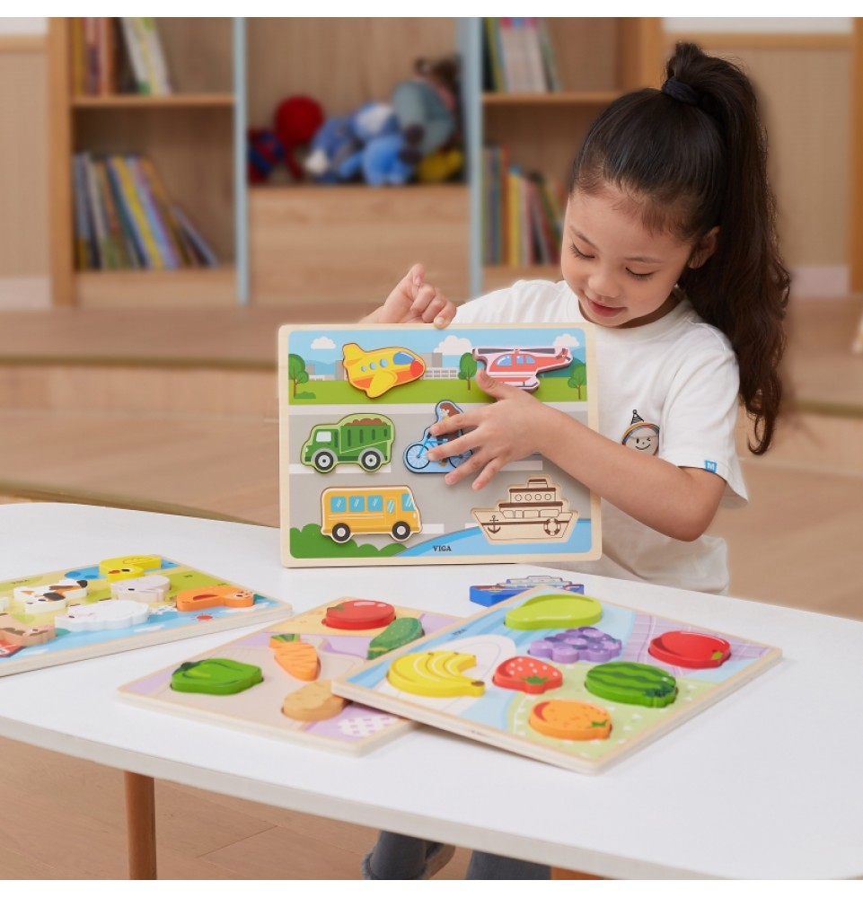 Medinė VIGA dėlionė transporto tema. Rinkinį sudaro spalvinga lenta ir 7 detalės. Žaidimas susideda iš transporto priemonių plytelių priderinimo prie atitinkamų vietų spalvingame pagrinde, ant kurio yra trūkstamų detalių iliustracijos, kad būtų lengva jas rasti. Šis užsiėmimas padės lavinti tikslius rankų judesius , gerinti akių ir rankų koordinaciją , taip pat lavins atmintį , loginį mąstymą ir susikaupimą . Dėl detalių storio dėlionę galima naudoti kaip figūrėles kituose žaidimuose.