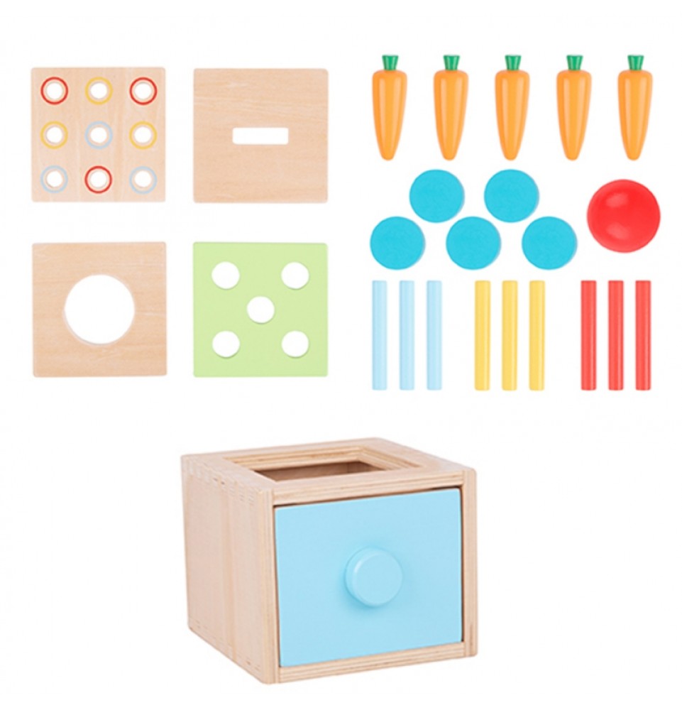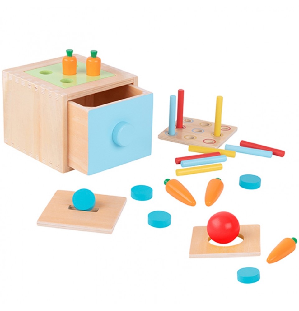 Žaidimo principas paprastas – įmeskite daiktą į atitinkamą angą ir stebėkite, kaip jis įslysta į ištraukiamą stalčių. Ši, atrodytų, paprasta veikla slepia daugybę edukacinių vertybių, kurios moko, linksmina ir lavina!