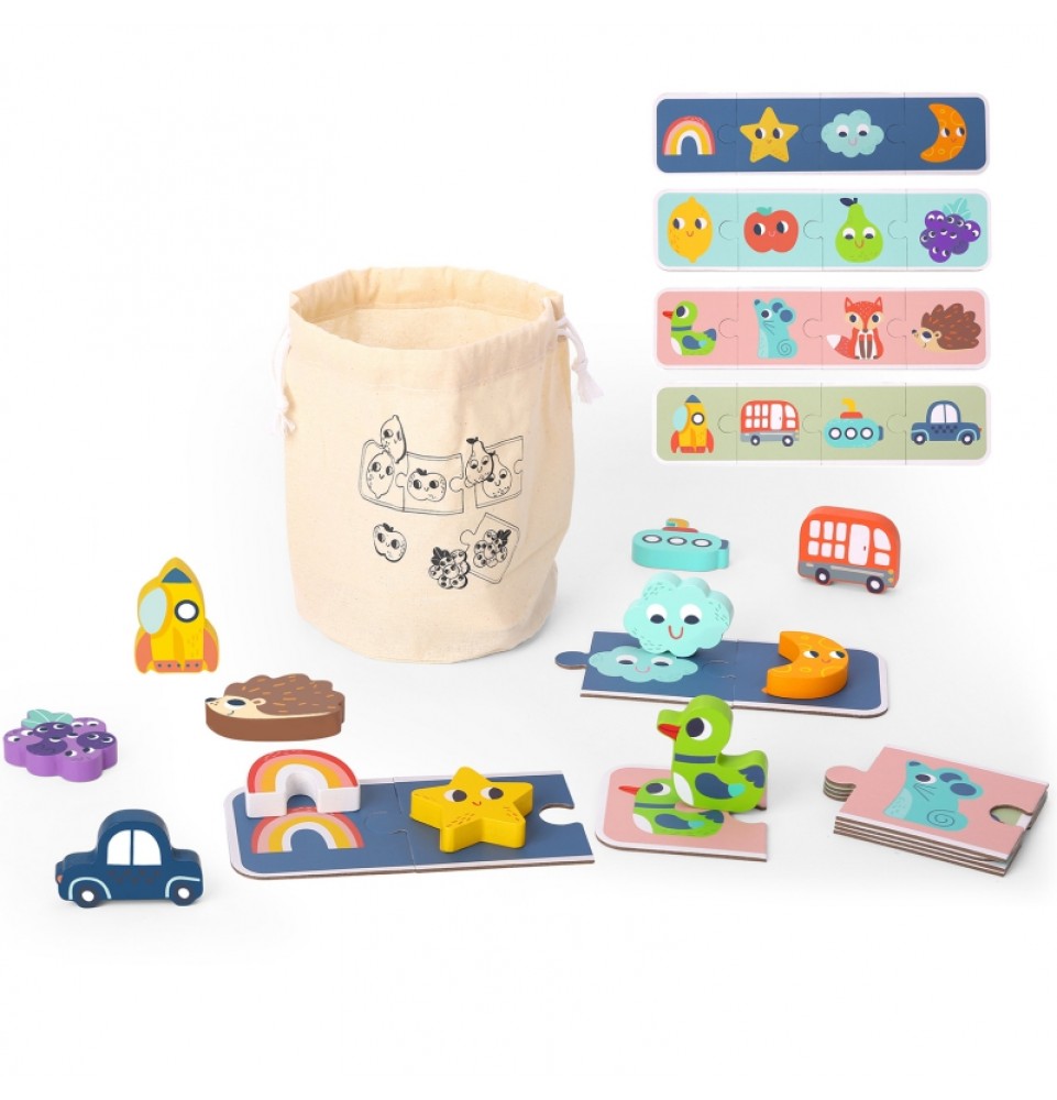 Žaidimo taisyklės paprastos : kiekvienas žaidėjas, pasitelkdamas tik lytėjimo pojūtį, turi drobiniame maišelyje rasti tinkamą medinį daiktą. Pasirinkimas iš įvairių formų, tokių kaip gyvūnai, vaisiai ar transporto priemonės, leidžia pritaikyti sudėtingumo lygį pagal žaidėjų amžių ir įgūdžius, todėl žaidimas yra ir lavinantis , ir įdomus !