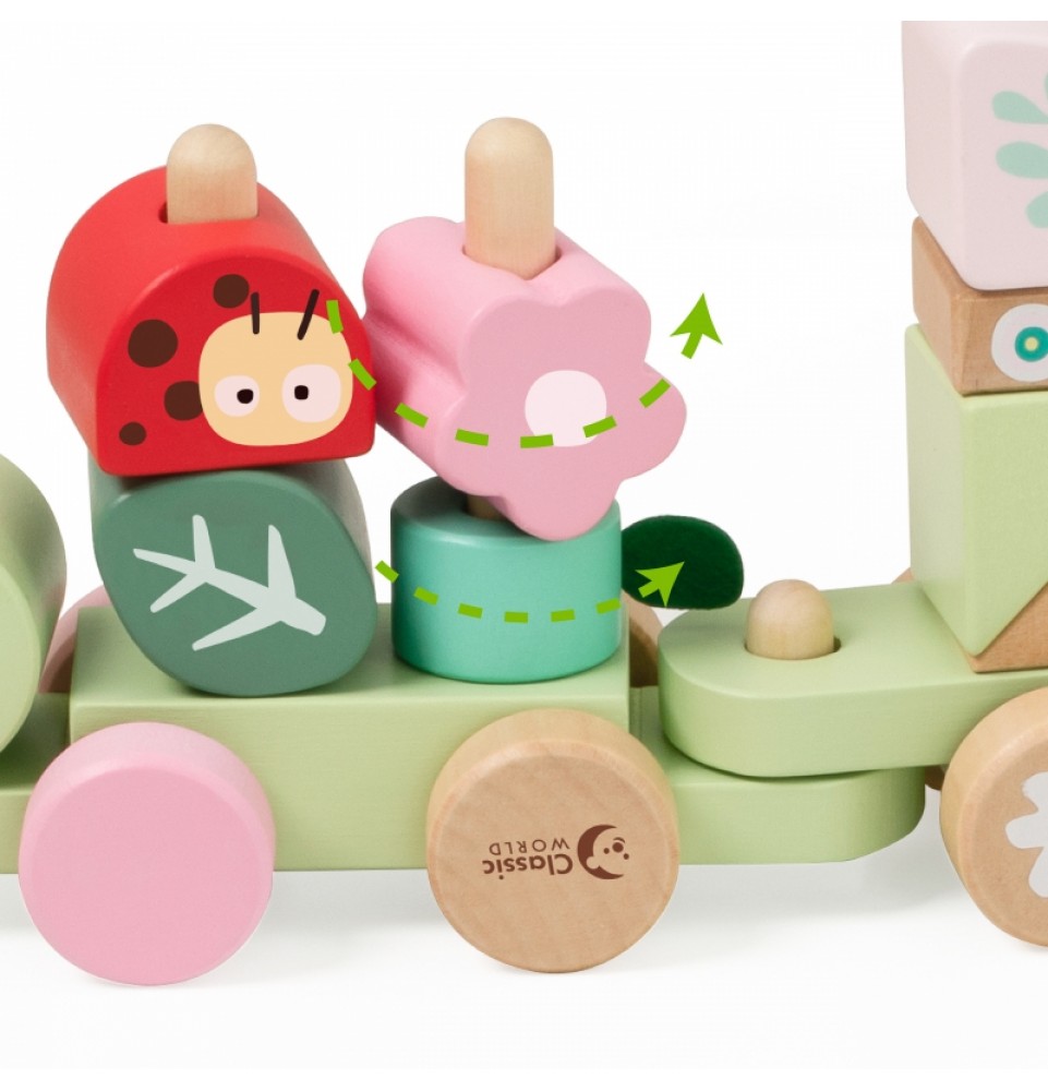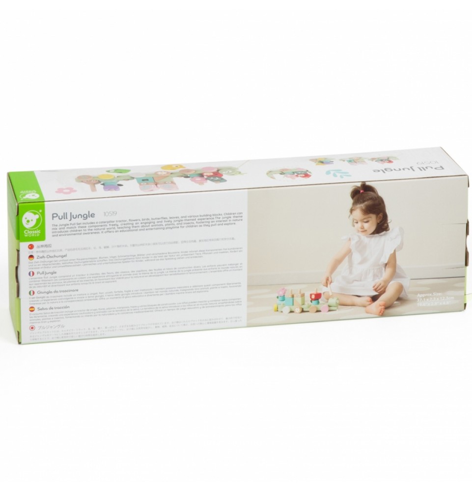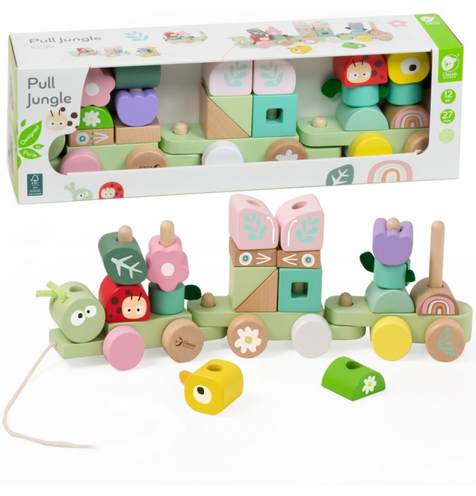 Medinis vikšro traukinukas iš „Classic World“ yra gražių pastelinių spalvų žaislas, kuris ne tik džiugina akį, bet ir lavina vaizduotę, koordinaciją bei rankų miklumą. Džiunglių tema supažindina vaikus su gamtos pasauliu , moko apie gyvūnus, augalus ir vabzdžius, ugdo susidomėjimą gamta ir aplinkosauginį sąmoningumą. Vaikai gali laisvai derinti šiuos elementus, sukurdami įtraukiančią ir gyvybingą džiunglių įkvėptą patirtį.