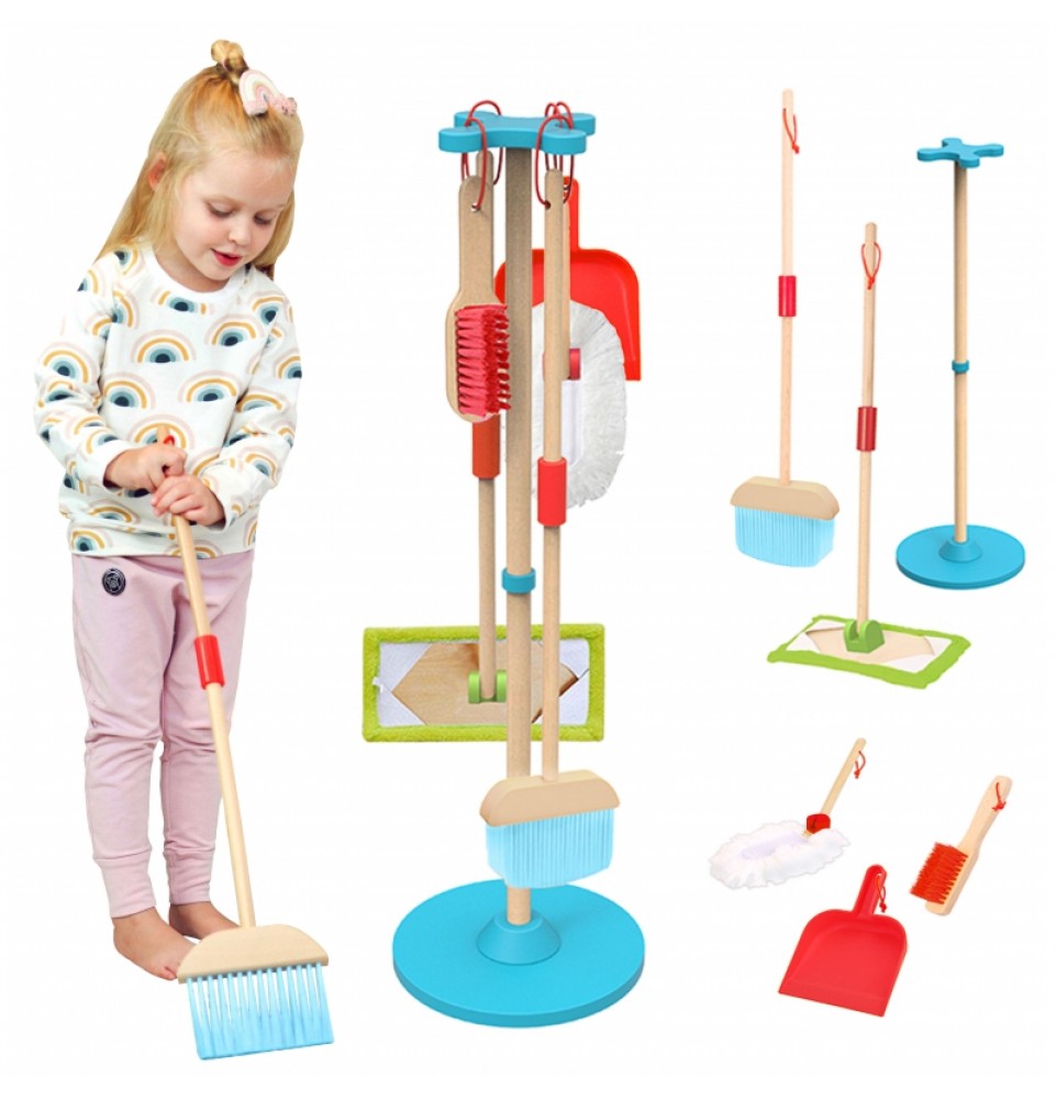 „Tooky Toy“ valymo rinkinys – puikus pasirinkimas mažiesiems, norintiems aktyviai padėti atliekant namų ruošos darbus ir kartu mokytis žaisdami. Šis spalvingas medinis rinkinys turi puikiai vaikų rankoms pritaikytų priedų – jų dėka mažyliai mielai imsis mažojo pagalbininko vaidmens ir atras džiaugsmą tvarkytis namuose. Šis žaislas ne tik suteikia daug įkvepiančios pramogos, bet ir skatina sveiką vaiko vystymąsi bei ugdo gerus įpročius.