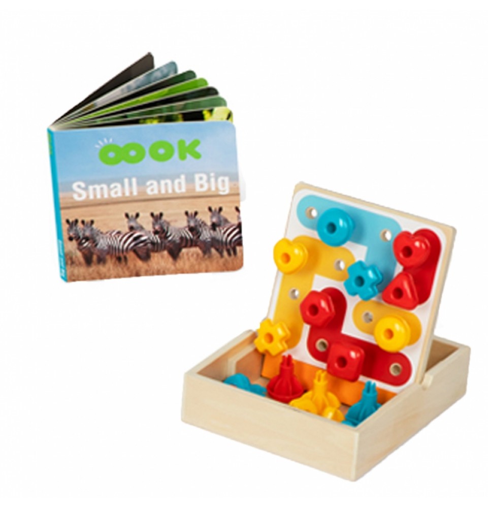 Sukurtas specialiai vaikams jų atradimų etape , jis siūlo įvairias žaidimo galimybes. Dėžutėje yra varžtai, kuriuos ikimokyklinio amžiaus vaikų rankytės lengvai suima, o lygūs, subtilūs kraštai leidžia vaikams ramiai žaisti. Varžtai yra įvairių geometrinių formų, sodrių spalvų ir turi įvairų žaidimo kortelių turinį. Tai puikus daugiafunkcinių lavinamųjų žaislų rinkinys, kuris padės vaikams išmokti atpažinti formas ir spalvas. Be to, žaidimo metu lavinami smulkiosios motorikos įgūdžiai ir susikaupimas . Šis žaislas gali padėti mažiems vaikams lavinti akių ir rankų koordinaciją, loginį mąstymą ir vaizduotę . Medinė dėžutė su žaidimo funkcija taip pat tarnauja kaip daiktadėžė, leidžianti laikyti visas detales nesijaudinant dėl jų pametimo.