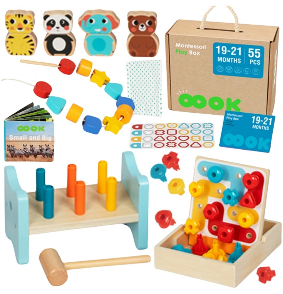 „TOOKY TOY“ siūlo Montessori lavinamųjų žaislų dėžutę . Šis medinis žaislas skirtas 19–21 mėnesių vaikams. Dėžutėje yra penki skirtingi lavinamieji žaidimai ir žaislai, kurie tikrai sudomins jūsų mažylį. Ši dėžutė – puikus būdas lavinti mažylių pažintinius, emocinius ir motorinius įgūdžius! Rinkinyje yra naudojimo instrukcija , kurioje pateikiama informacija apie dėžutės turinį, žaislų naudojimo instrukcijos ir naudingi patarimai.