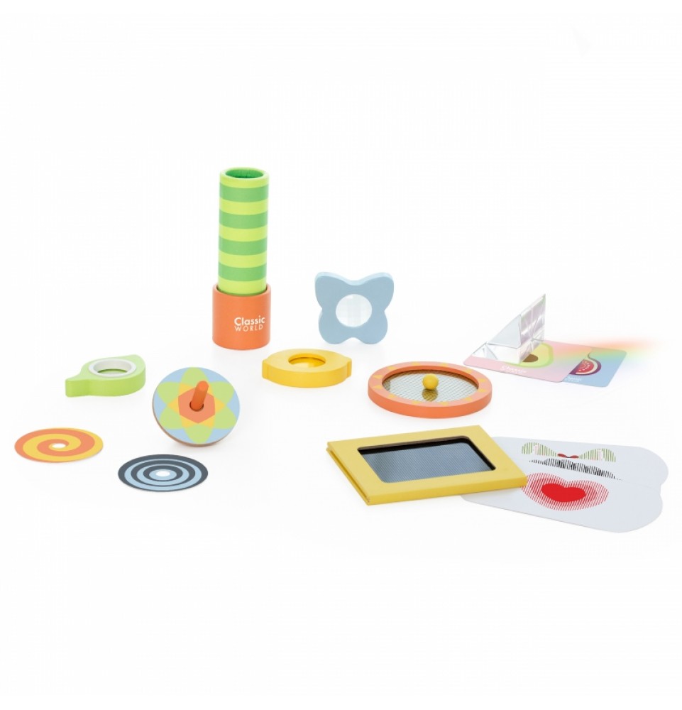 CLASSIC WORLD Optinių eksperimentų sensorinis rinkinys pojūčių lavinimui, 16 vnt.