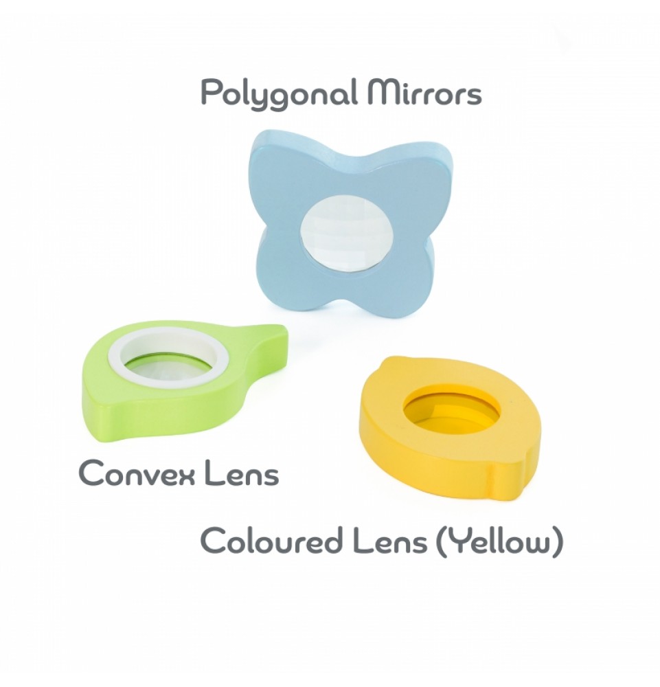• - 3 lęšiai , kurie keičia aplinkos išvaizdą (spalvą, formą, dydį)