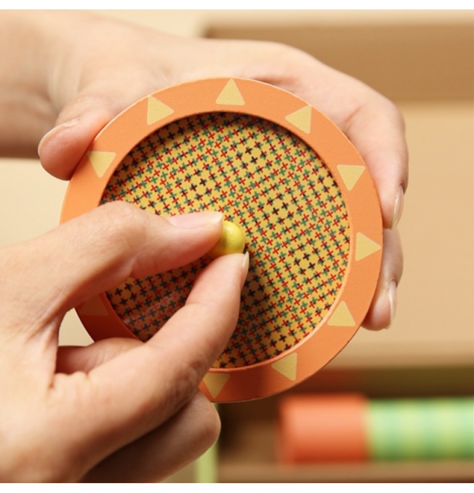 • - Optinis tinklelis su judančiu elementu - sukdami rutulį žaislo centre, sukuriame optinę iliuziją