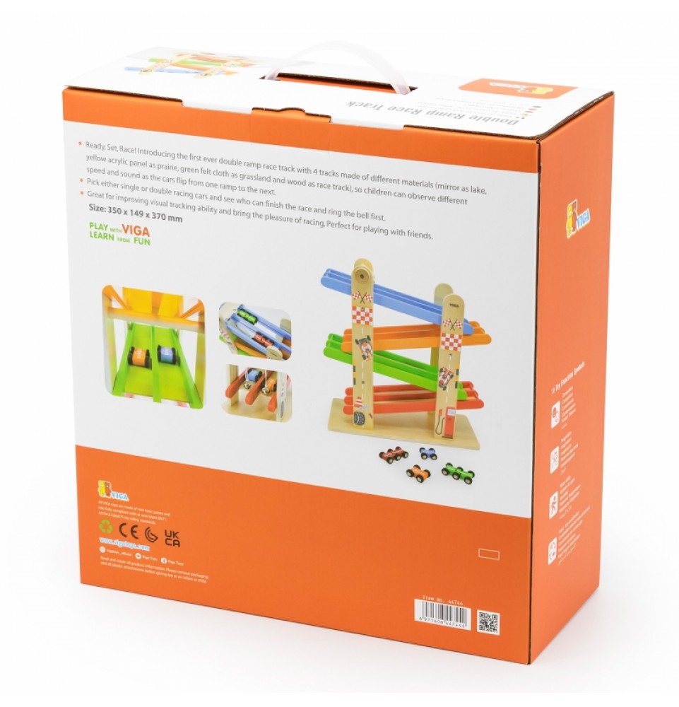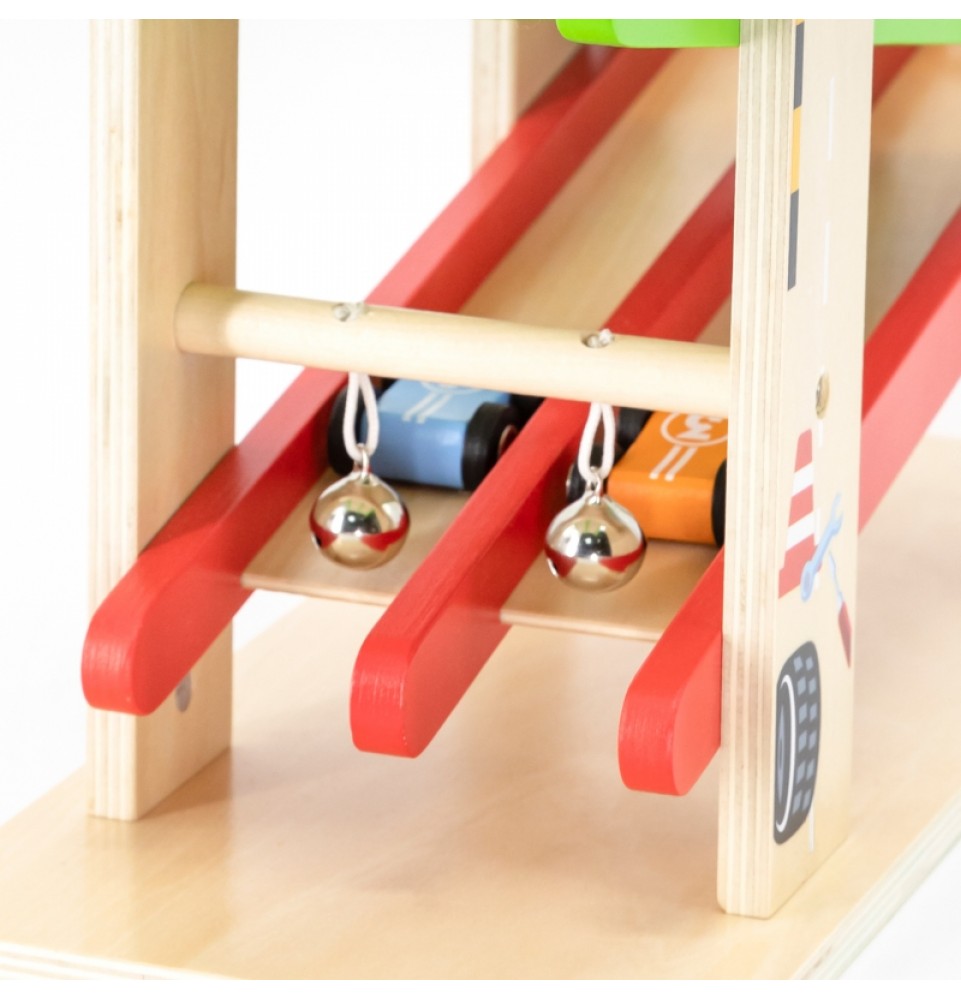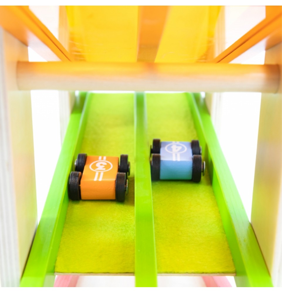 Lenktynių trasa – puikus žaislas kiekvienam mažajam lenktynių entuziastui. Unikalus dizainas ir patvari konstrukcija puikiai tinka bet kurio vaiko kambariui. Dvi trasos suteikia šiam populiariam žaislui dar daugiau džiaugsmo – vaikai gali žaisti vienas prieš kitą lenktyniaudami su dviem automobiliais vienu metu! Finišo linijoje laukia varpai , skambantys automobiliams pasiekus trasos galą. Rinkinį sudaro dviejų tipų keturių ratų automobiliai : du keturračiai ir du šešiaračiai, kurie paįvairins pramogas ir žaismingai supažindins su fizikos dėsniais. Gaminys sukurtas galvojant apie mažas vaikų rankeles. Aštrių briaunų nebuvimas leidžia jį saugiai naudoti mažyliams. Spalvos patrauks kiekvieno vaiko akį ir užtikrins nesibaigiančias pramogas. Pasiruošę? Pirmyn! Įdomu, kas laimės šias lenktynes.
