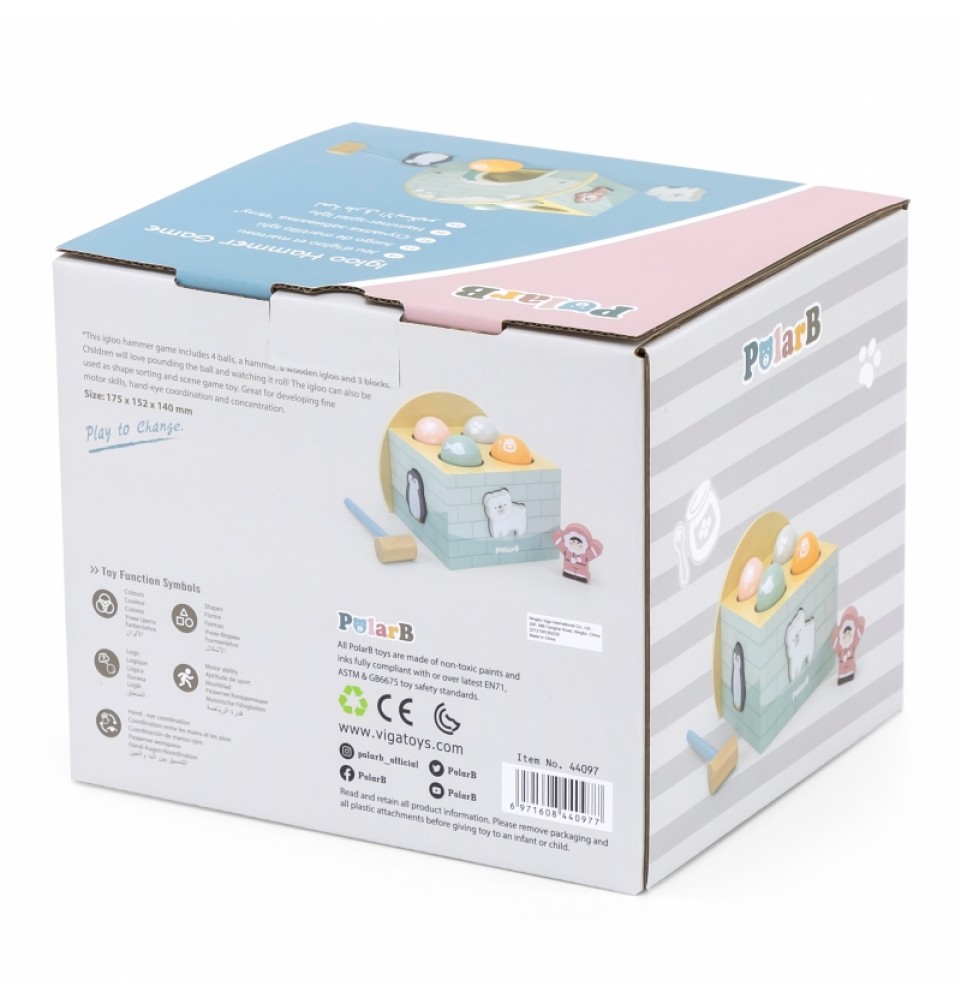„ Viga“ „Igloo Pastel Punch“ – žaislas, kurį pamils kiekvienas vaikas. Jame yra kelios funkcijos: kamuoliukų skylamušis , rūšiuotojas ir žaislas žaidimui su figūrėlėmis . Įkišti kamuoliukai išskrenda pro iglu duris. Jei sunku išimti kaladėles ar kitus elementus iš iglu vidaus, galite atsukti priekinį skydelį, kad būtų lengviau pasiekti. Žaisdami vaikai lavina tikslius rankų judesius , miklumą ir vis geriau atskiria spalvas . Ateityje šis tikslumas ir miklumas padės jūsų vaikui lengviau mokytis rašyti .