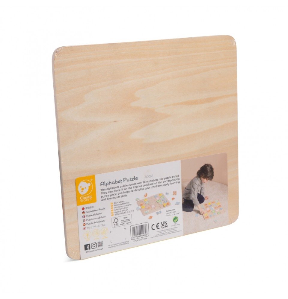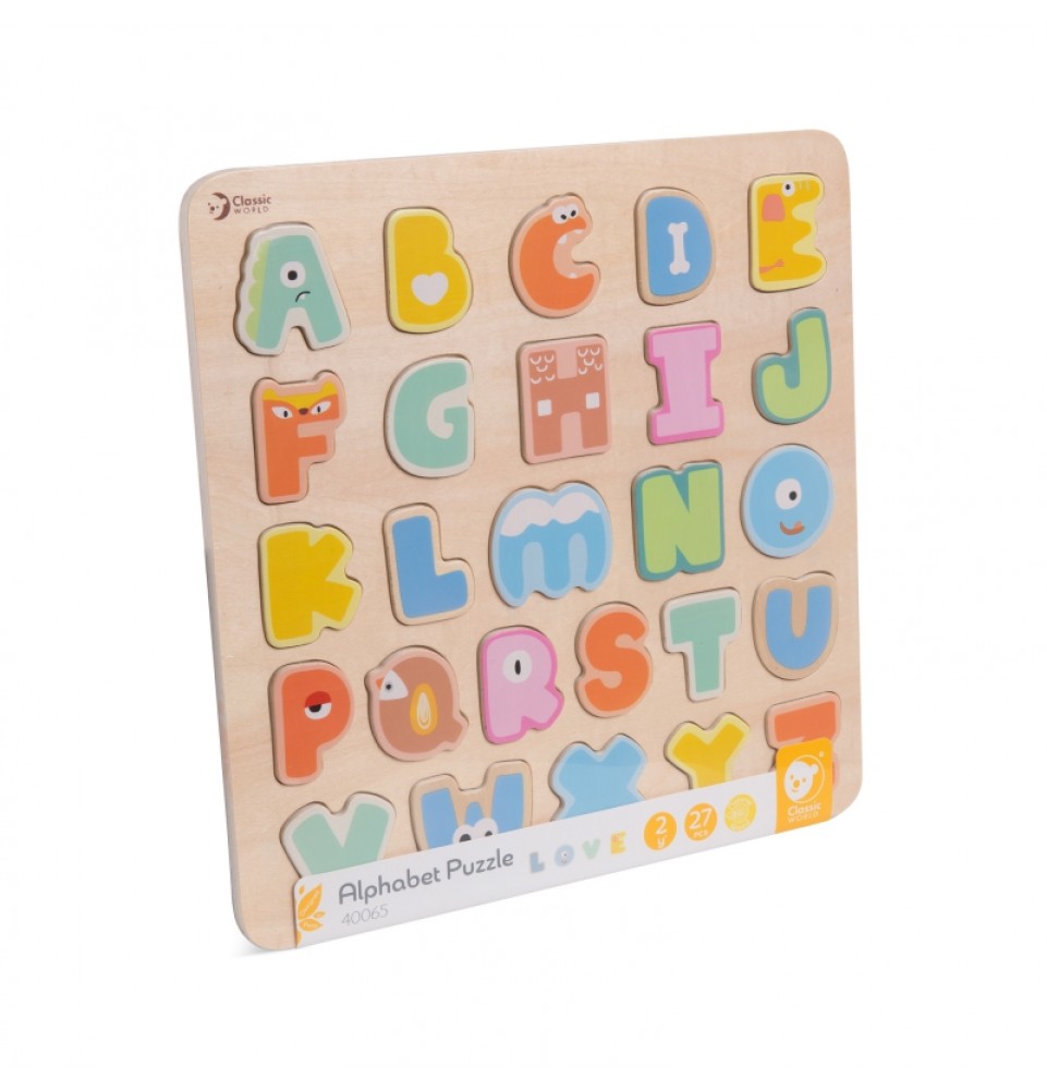 Spalvingi CLASSIC WORLD abėcėlės galvosūkiai – puikus sprendimas pradedantiesiems mokantis raidžių. Šis medinis žaislas padės jūsų vaikui lavinti stebėjimo įgūdžius, akių ir rankų koordinaciją bei susikaupimą, taip pat lavins miklumą ir, svarbiausia, pradės atrasti raidžių pasaulį.
