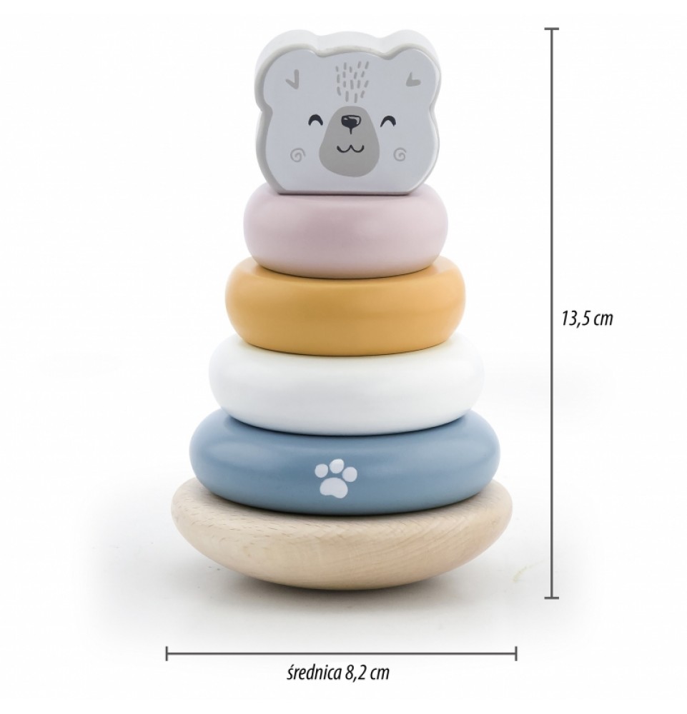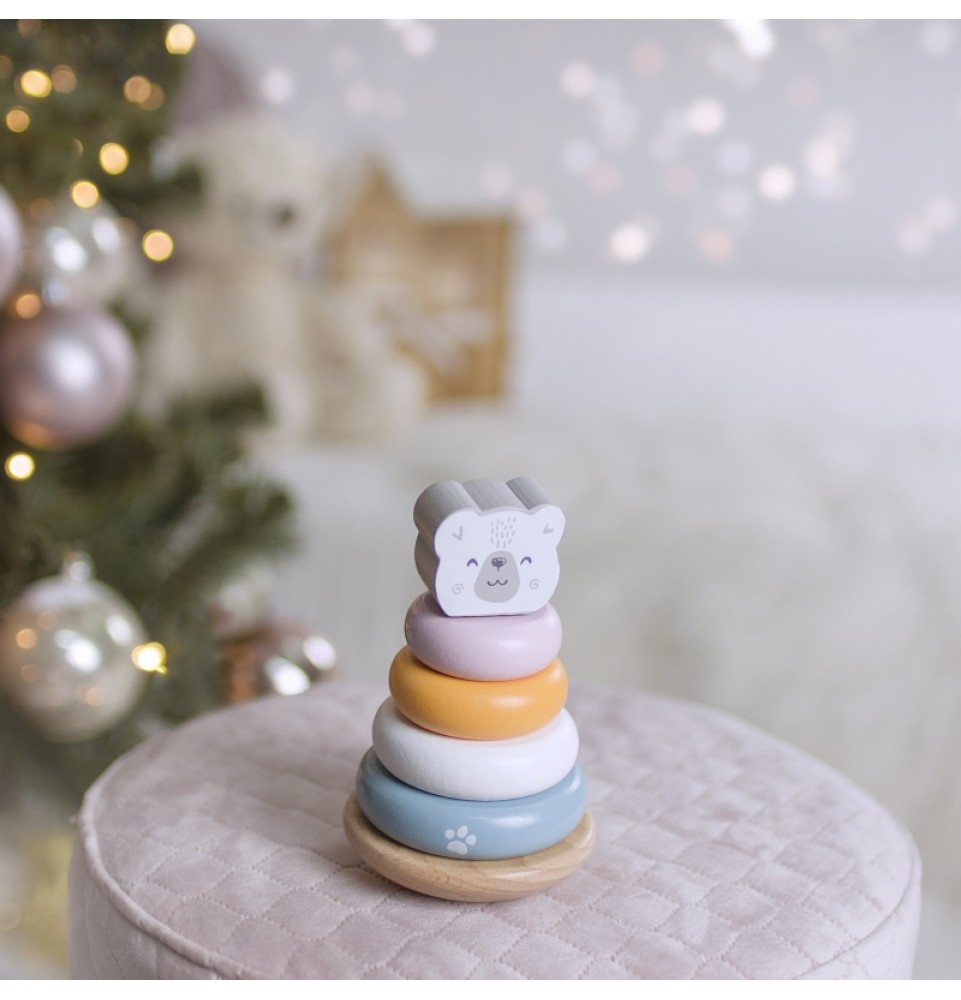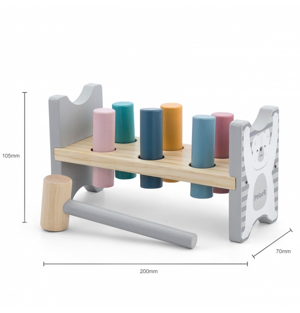 VIGA PolarB medinės piramidės rinkinys + baltojo lokio plaktukas-perforatorius Montessori