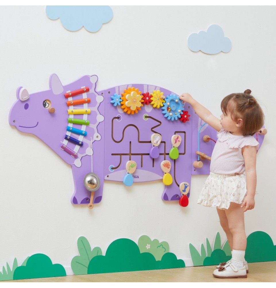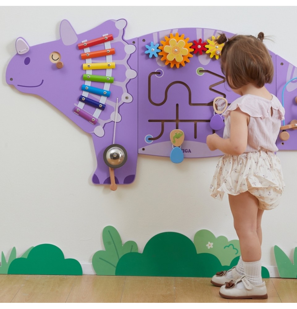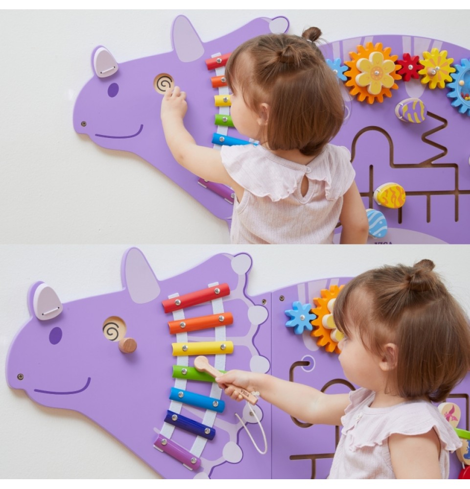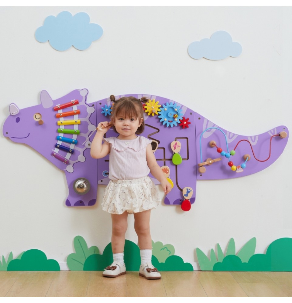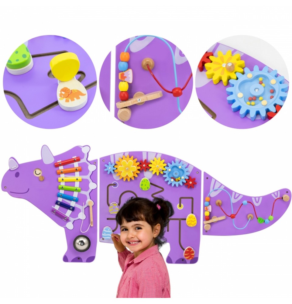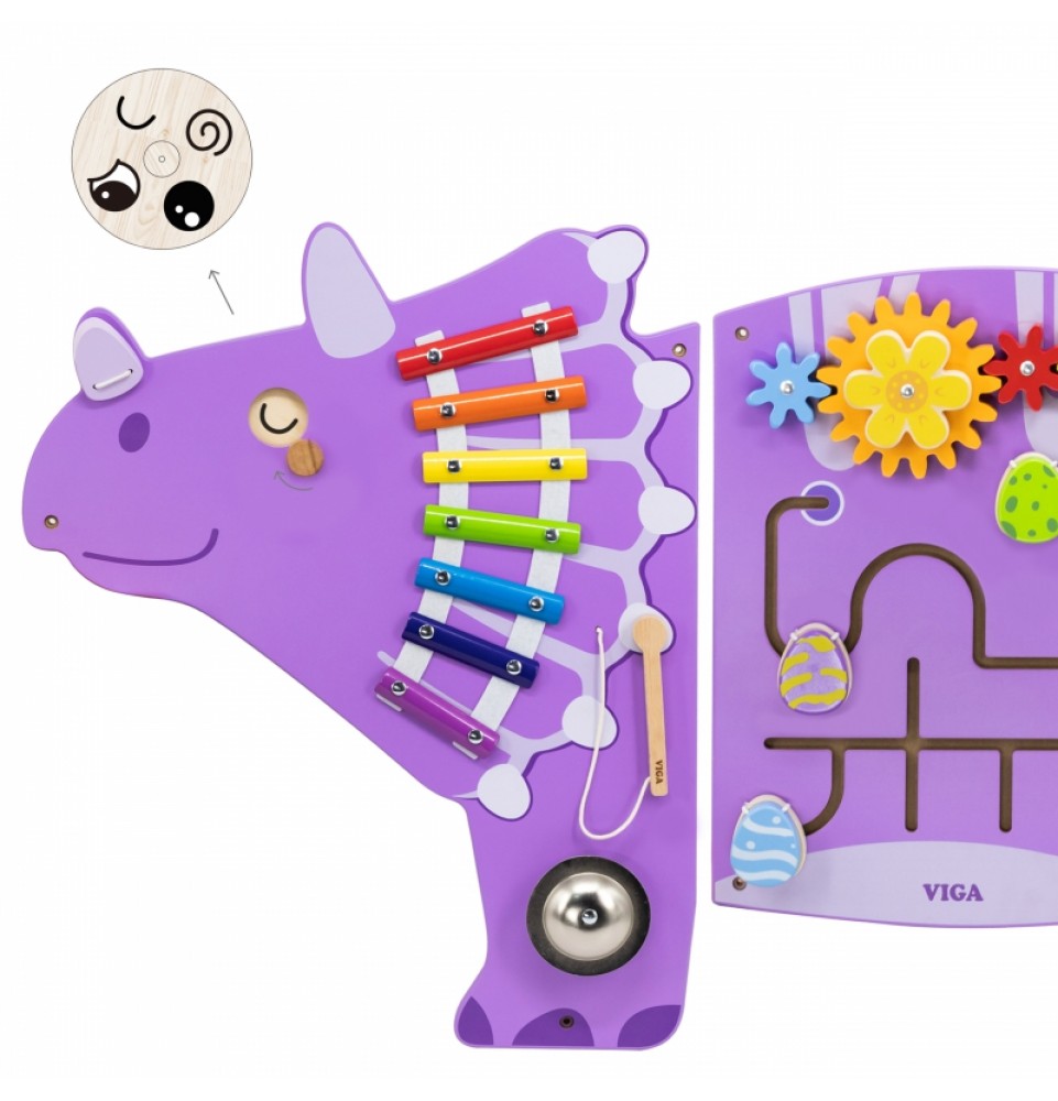 Spalvinga „Viga Toys“ manipuliacinė lenta „Triceratops“ yra medinis, daugiafunkcis sieninis žaislas , kuris suteiks vaikams valandų valandas pramogų ir mokymosi. Ant lentos vienu metu gali žaisti keli vaikai. Joje yra tokių veiklų kaip krumpliaračiai, variklio kilpa su karoliukų paleidimo įrenginiu , stumdomas labirintas su atidaromais kiaušiniais , ksilofonas , gongas ir besisukančios dinozauro akys . Tai puikus žaislų derinys mokykloms, ikimokyklinėms įstaigoms, mokymosi centrams ir viešosioms erdvėms.