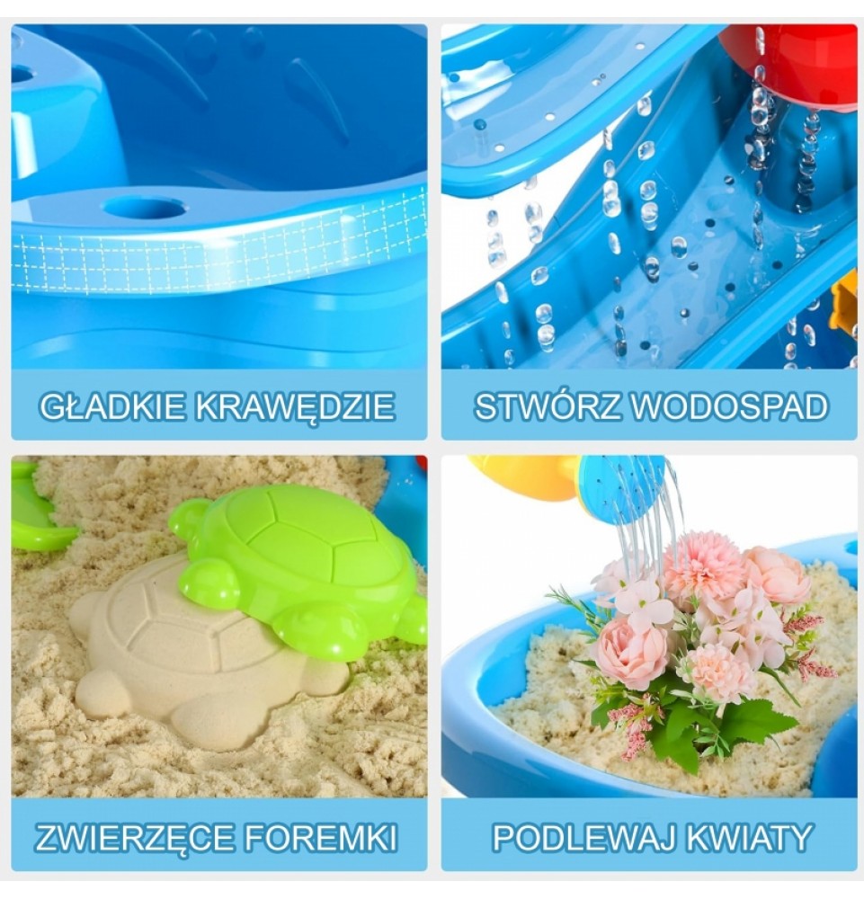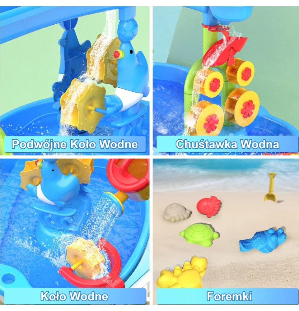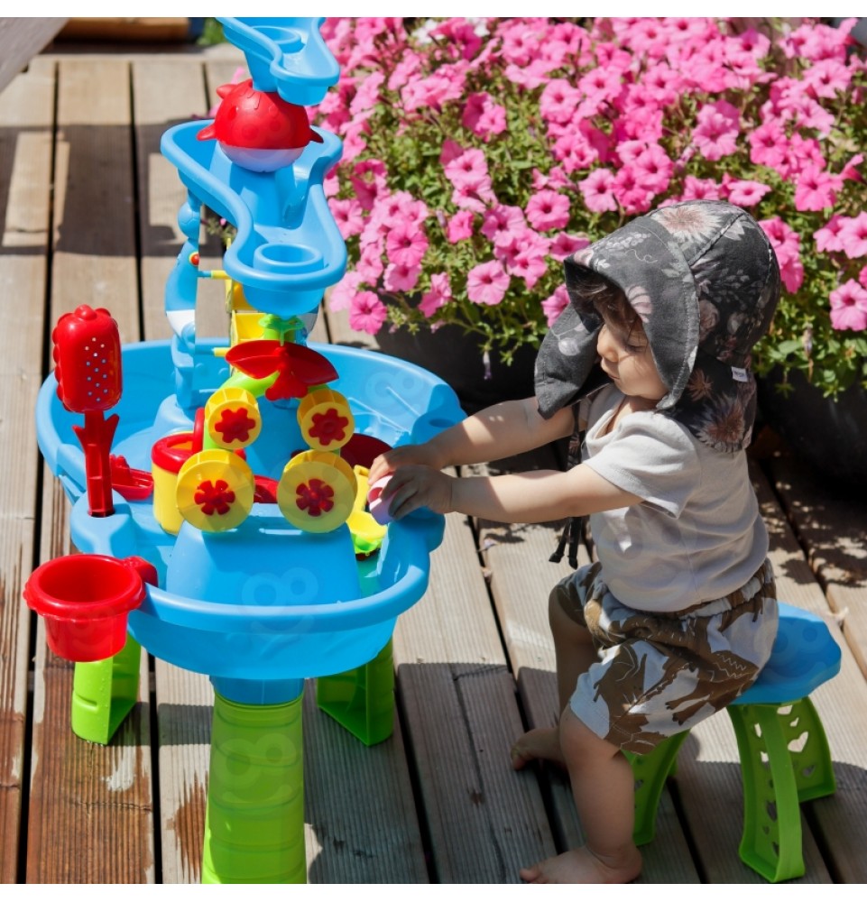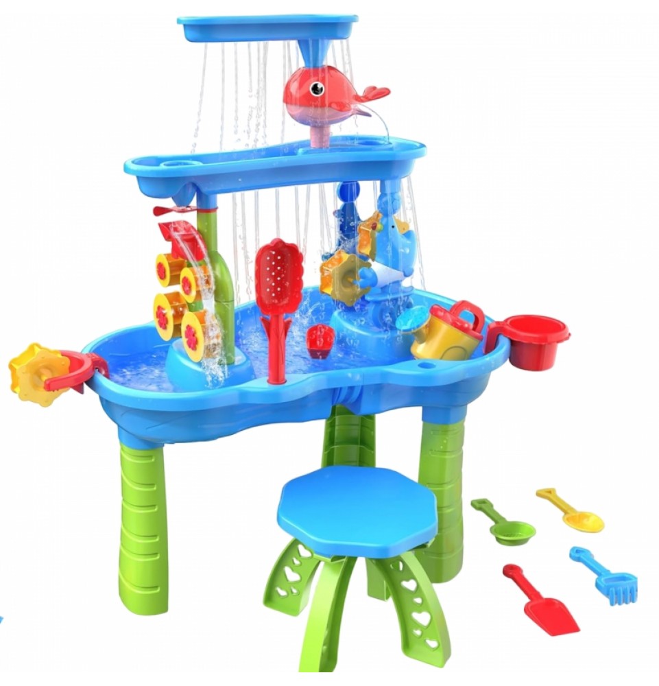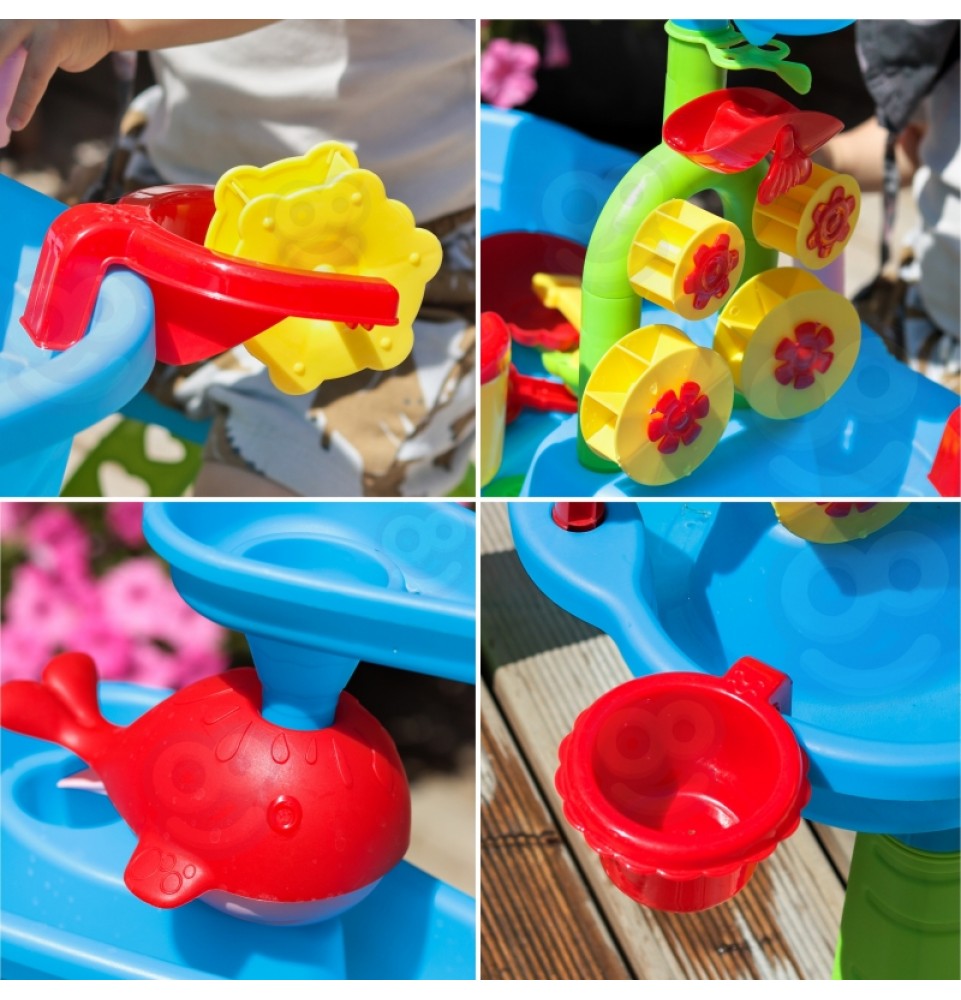 Unikalus WOOPIE vandens staliukas – puikus būdas smagiai praleisti laiką ištisus metus, nepriklausomai nuo oro sąlygų. Tai ne tik fantastiška pramoga karštomis dienomis, bet ir puikus būdas įveikti nuobodulį atvėsus orams. Šis unikalus staliukas pasižymi pažangia, trijų pakopų vandens sistema, kuri tikrai pradžiugins bet kurį vaiką! Mažieji tyrinėtojai gali naudoti laistytuvą vandeniui pilti į viršutinę kamerą ir stebėti, kaip krioklys teka į apatinį rezervuarą, įjungdamas vandens ratą. Be to, su pridėtais priedais šis staliukas taip pat gali būti naudojamas žaidimams smėlyje , tiek įprastiems , tiek kinetiniams , todėl tai universalus žaislas bet kokiai progai.