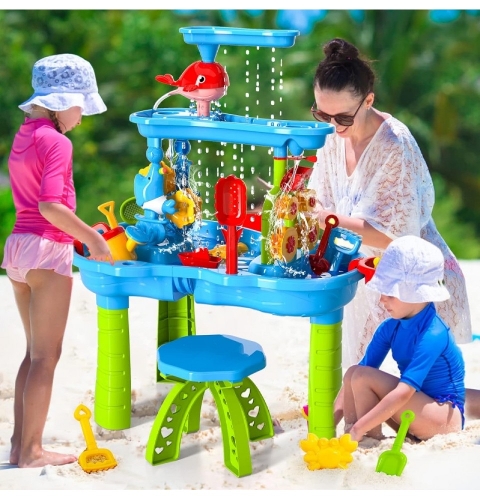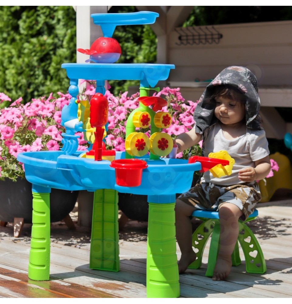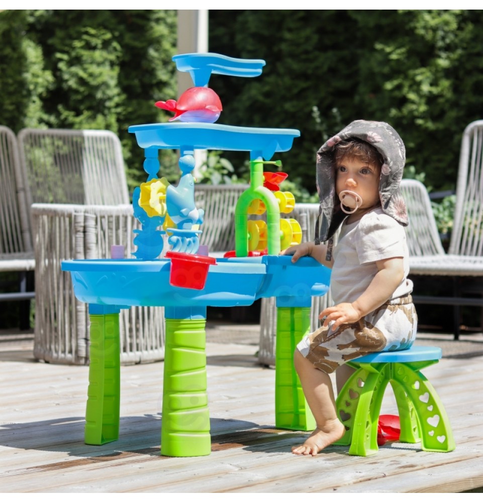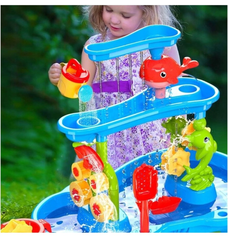 Unikalus WOOPIE vandens staliukas – puikus būdas smagiai praleisti laiką ištisus metus, nepriklausomai nuo oro sąlygų. Tai ne tik fantastiška pramoga karštomis dienomis, bet ir puikus būdas įveikti nuobodulį atvėsus orams. Šis unikalus staliukas pasižymi pažangia, trijų pakopų vandens sistema, kuri tikrai pradžiugins bet kurį vaiką! Mažieji tyrinėtojai gali naudoti laistytuvą vandeniui pilti į viršutinę kamerą ir stebėti, kaip krioklys teka į apatinį rezervuarą, įjungdamas vandens ratą. Be to, su pridėtais priedais šis staliukas taip pat gali būti naudojamas žaidimams smėlyje , tiek įprastiems , tiek kinetiniams , todėl tai universalus žaislas bet kokiai progai.