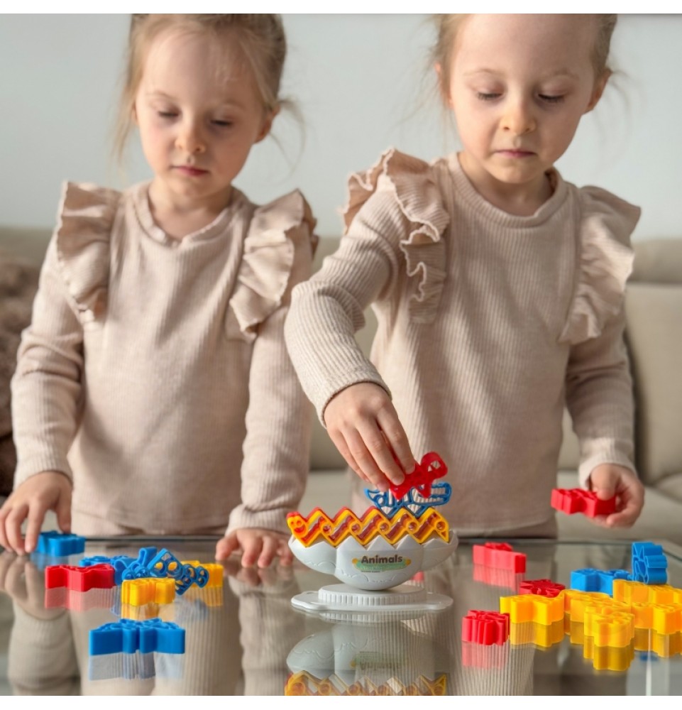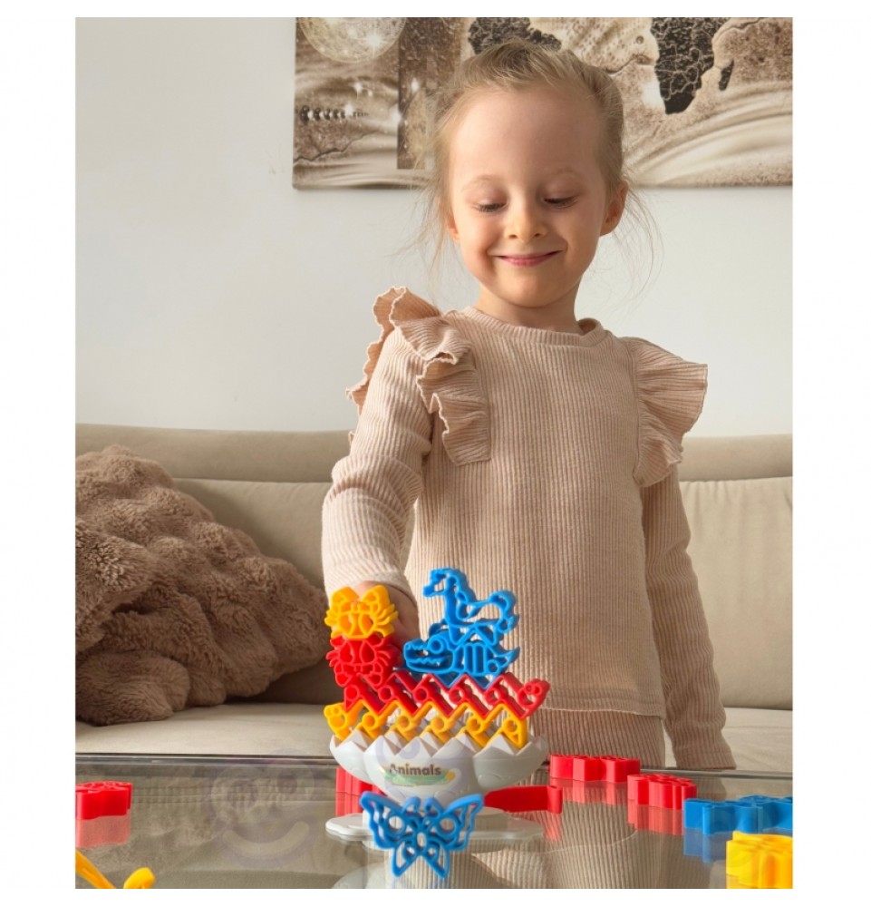 „Woopie Balancing Animals“ įgūdžių žaidimas yra neįtikėtinai įtraukiantis žaidimas, kuriame derinamas mokymasis, pramogos ir jaudulys. Tai ne tik žaidimas – tai unikali patirtis, skatinanti kūrybiškumą, mokanti susikaupti ir lavinanti motorinius įgūdžius. Rinkinys pagrįstas gyvūnų išdėstymo ant specialaus balansuojančio kiaušinio formos pagrindo principu – kiekvienas gyvūnas turi skirtingą formą ir svorį, todėl kiekvienas raundas yra unikalus ir nenuspėjamas. Puikiai tinka žaisti vienam, taip pat su šeima ar bendraamžiais . Tikslas – sudėlioti visus gyvūnus ant kiaušinio neapverčiant. Atrodo paprasta? Niekas negalėtų būti toliau nuo tiesos! Judantis kiaušinis gali jus nustebinti, kai mažiausiai to tikitės. Tai puikus kantrybės, tikslumo ir strateginio mąstymo pratimas . Žaislas sukurtas taip, kad patrauktų vaikų dėmesį savo ryškiomis spalvomis ir unikaliomis gyvūnų formomis , kurios pačios gali būti savarankiškos žaidimo figūrėlės. Produktas pagamintas iš aukštos kokybės, saugaus plastiko, be kenksmingų medžiagų, todėl tai idealus pasirinkimas vaikams.