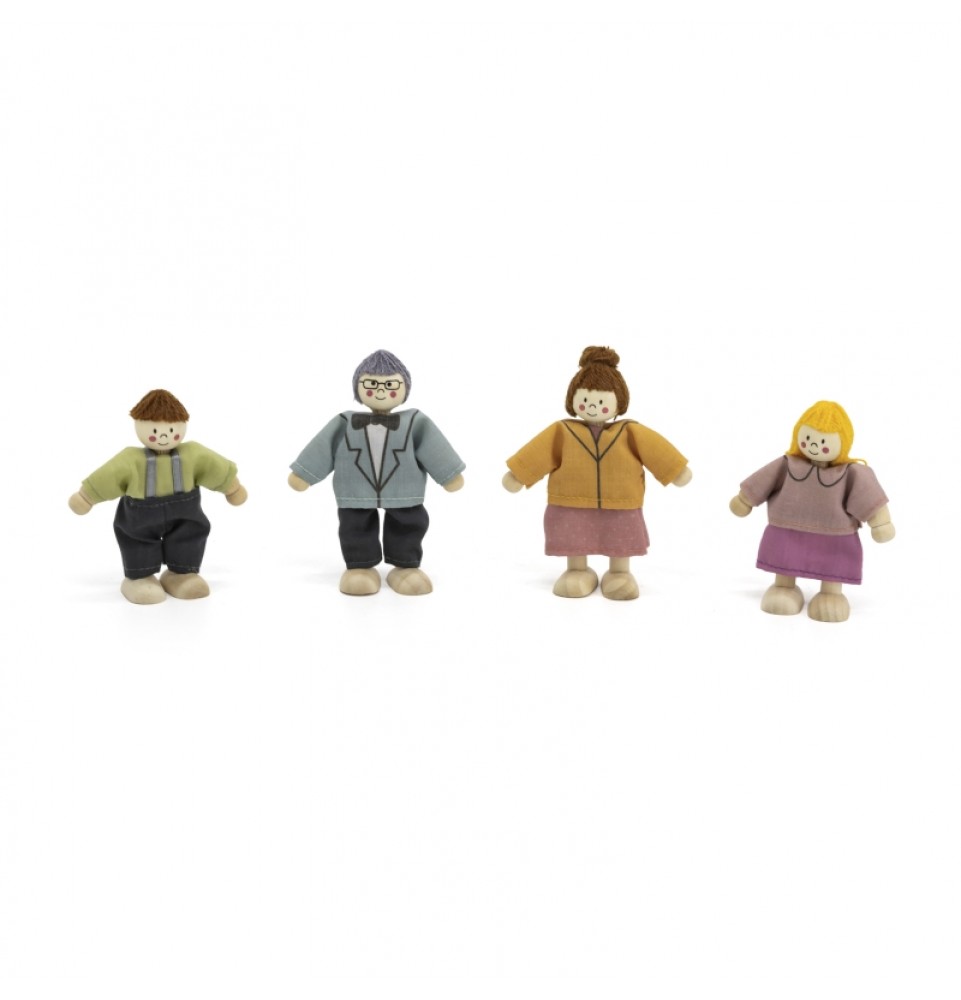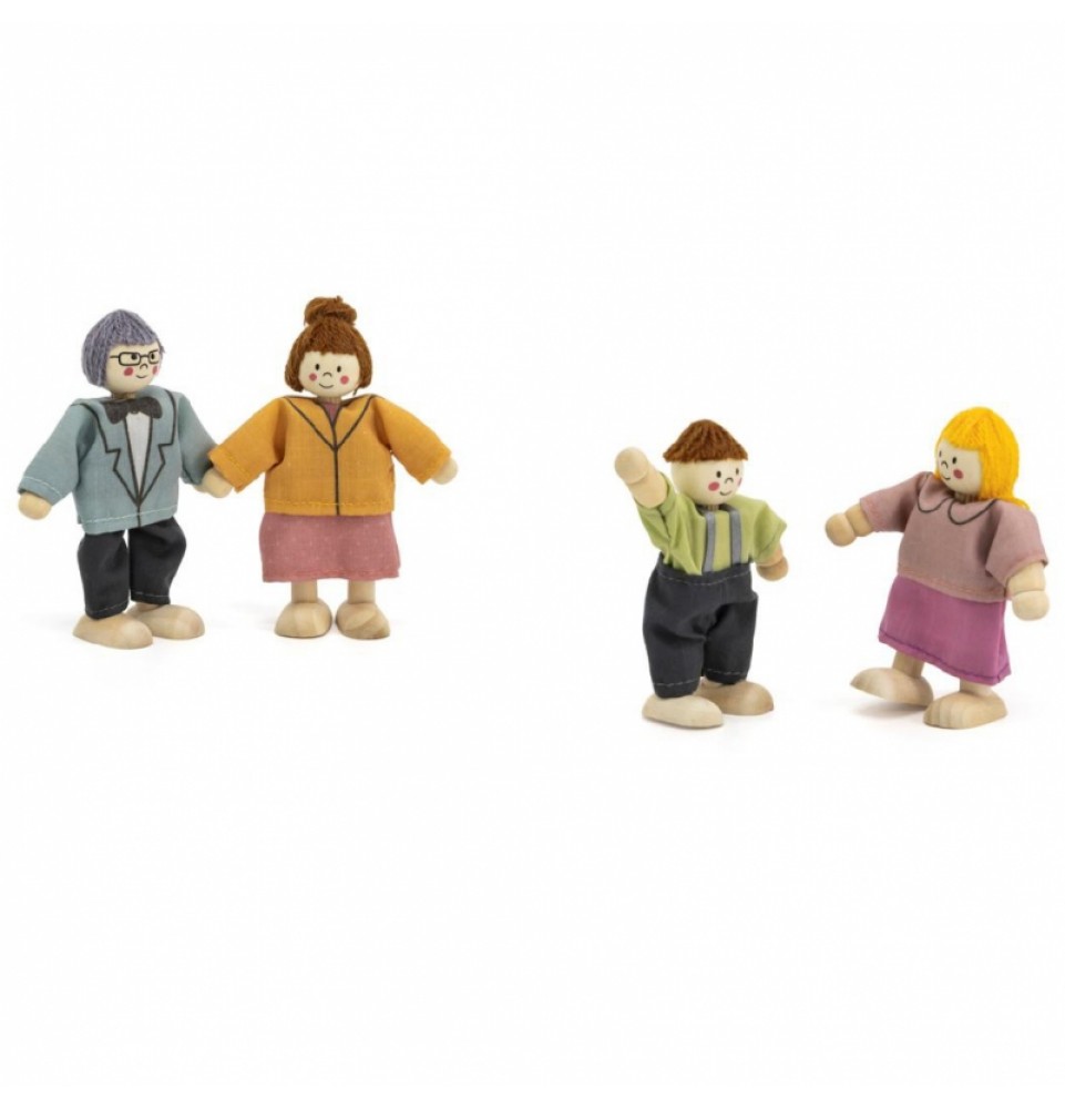 VIGA „Lėlių šeimos“ rinkinys yra žavingas keturių medinių figūrėlių – motinos, tėvo, sūnaus ir dukters – rinkinys . Lėlės turi judančias rankas ir kojas , todėl jas galima pozicionuoti įvairiose pozicijose, skatinant kūrybišką žaidimą ir vaidmenų žaidimą. Kiekviena lėlė aprengta spalvingais, medžiaginiais drabužiais , kurie suteikia žavesio ir realizmo. Tvirta medinė konstrukcija ir žavus dizainas daro rinkinį idealiu žaidimui lėlių namelyje arba kaip atskirą žaislą. Tai puikus būdas lavinti vaizduotę ir dalintis šeimos pramogomis.