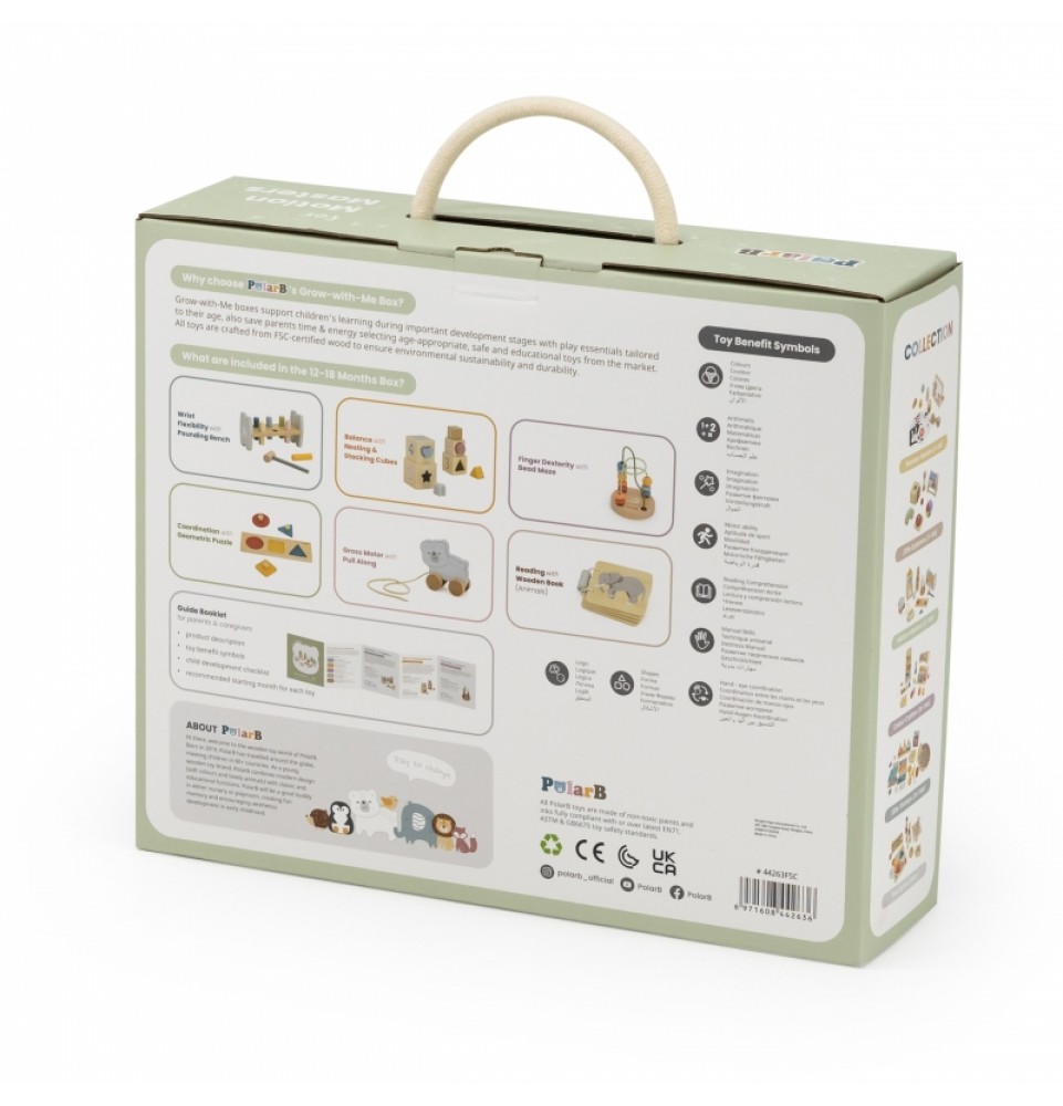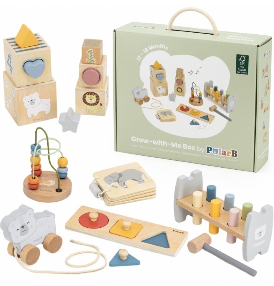 „Motion Masters“ (12–18 mėn.) – tai rinkinys, skirtas skatinti mažylių natūralų motorinį ir pažintinį vystymąsi. Su įvairiais žaislais vaikai lavina koordinaciją, lavina pirštų ir rankų miklumą, mokosi atpažinti formas ir spalvas. Spalvingi elementai ir mediniai gyvūnai žadina smalsumą ir skatina juos kasdien atrasti naujų įgūdžių.