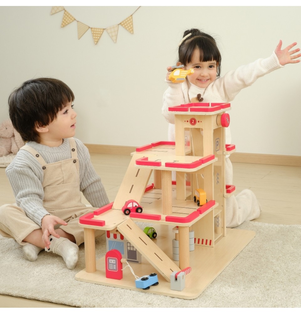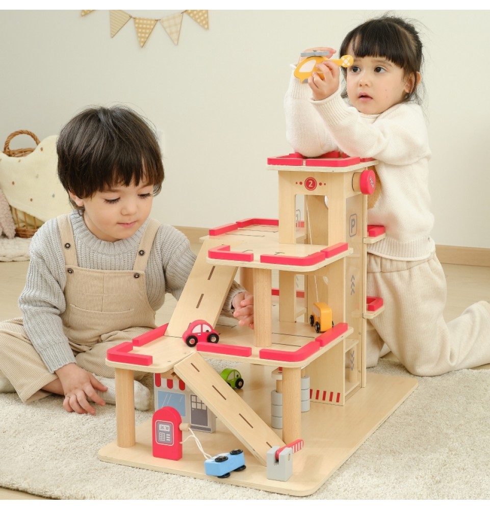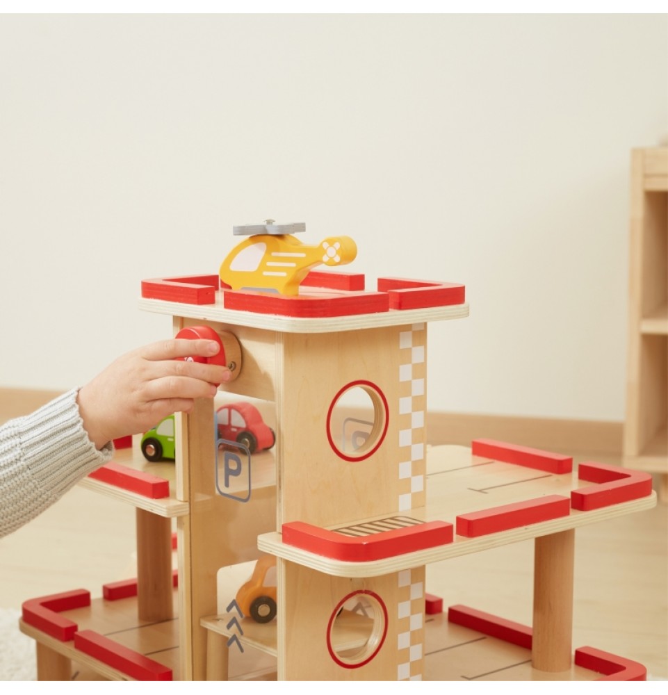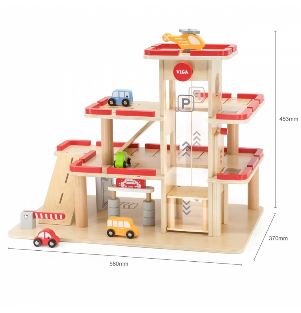 VIGA medinė automobilių stovėjimo aikštelė su liftu 4 automobiliams ir sraigtasparniu
