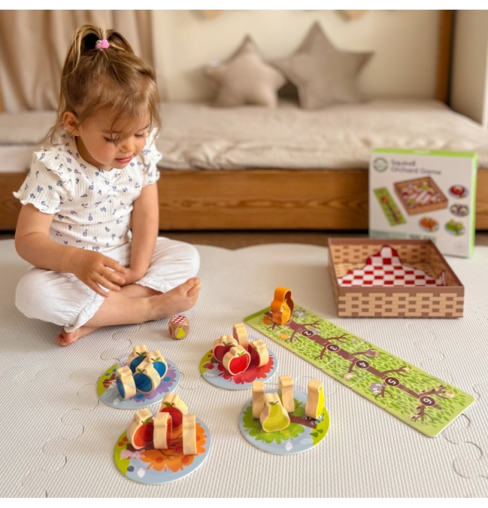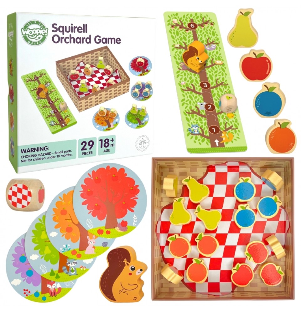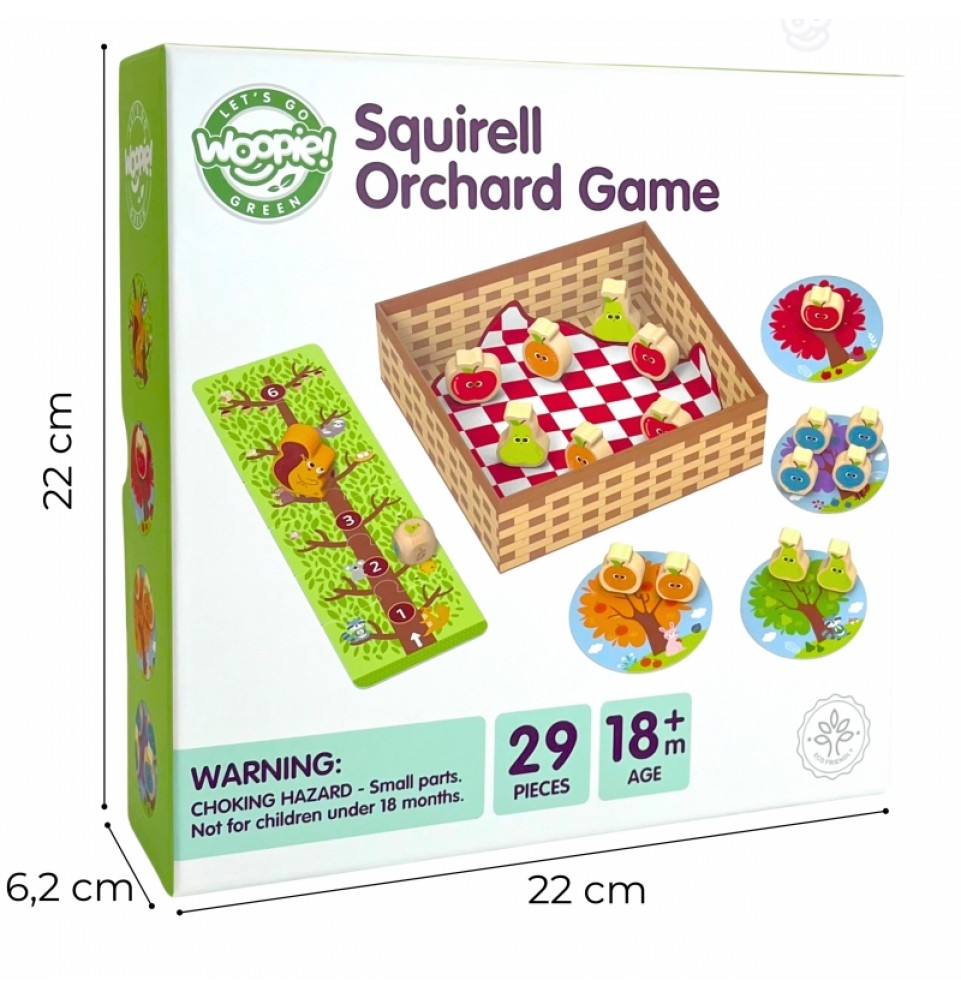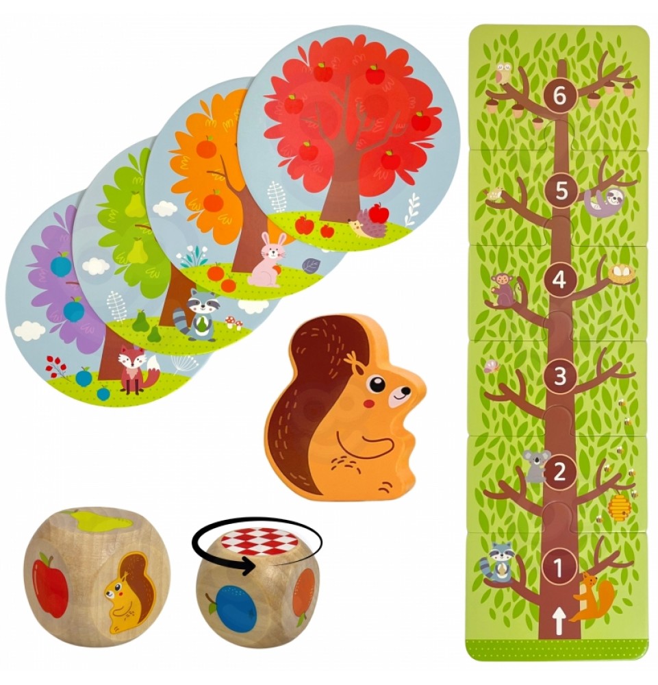 Tikslas paprastas – surinkti visus vaisius krepšelyje , kol voverė nespėjo jų „nuplėšti“ nuo medžio! Šis žavus žaidimas moko bendradarbiavimo, planavimo ir susikaupimo, kartu suteikdamas daug juoko ir įspūdžių. Pagamintas iš aukštos kokybės medienos ir gražiai iliustruotas, jis supažindina vaikus su stalo žaidimų pasauliu per žaidimą ir veiksmą.