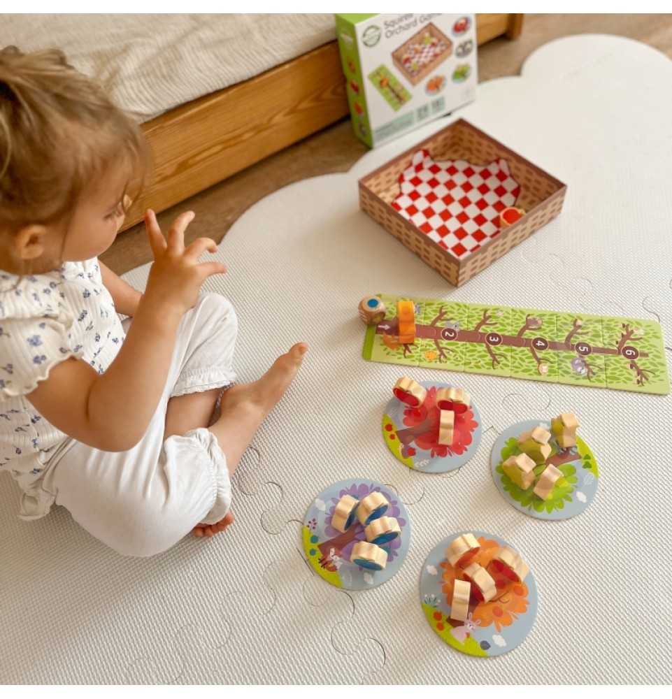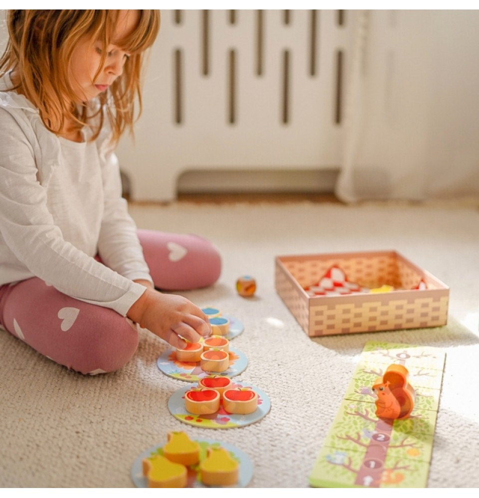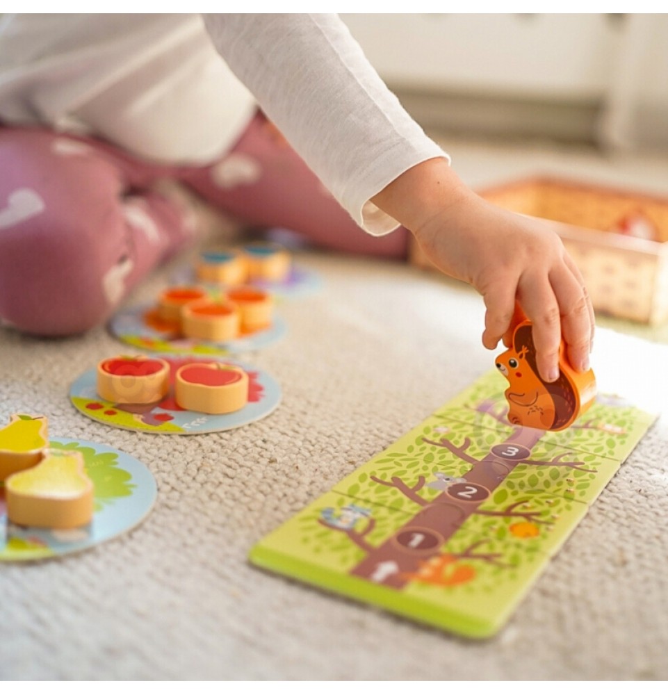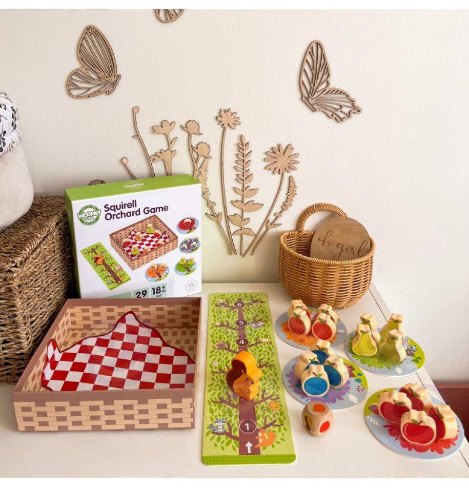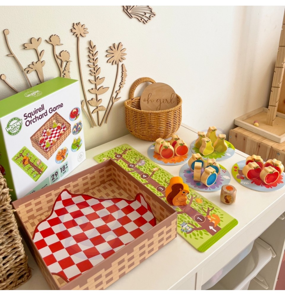 Tikslas paprastas – surinkti visus vaisius krepšelyje , kol voverė nespėjo jų „nuplėšti“ nuo medžio! Šis žavus žaidimas moko bendradarbiavimo, planavimo ir susikaupimo, kartu suteikdamas daug juoko ir įspūdžių. Pagamintas iš aukštos kokybės medienos ir gražiai iliustruotas, jis supažindina vaikus su stalo žaidimų pasauliu per žaidimą ir veiksmą.