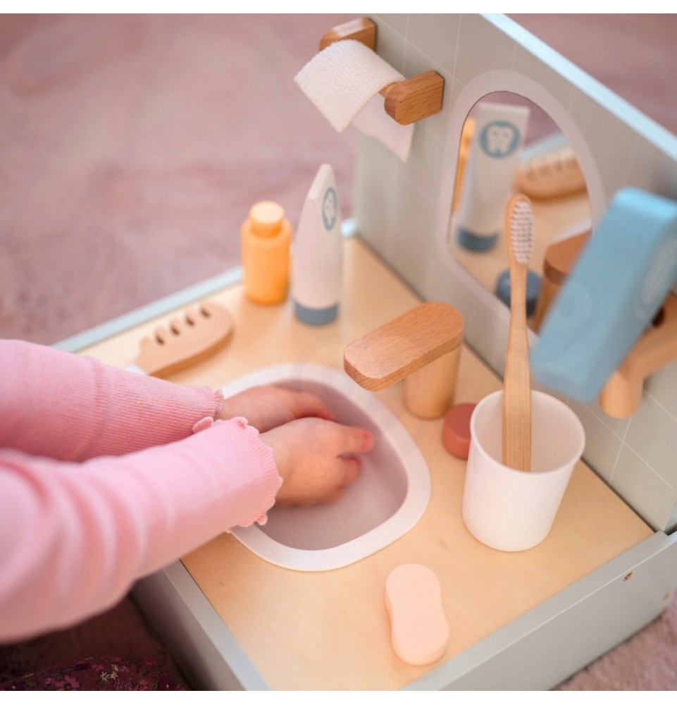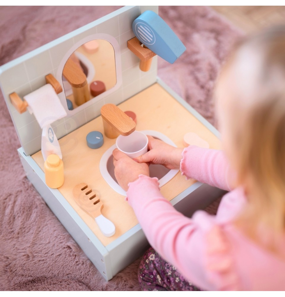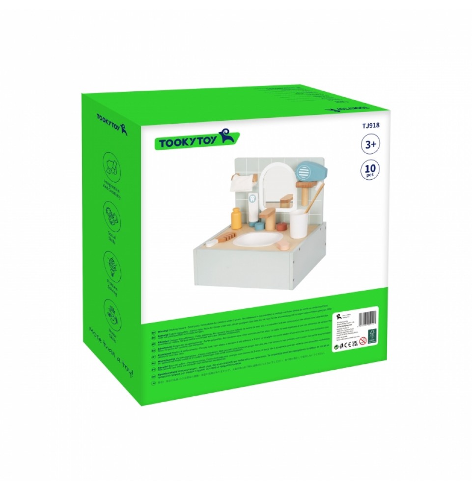 Paverskite kasdienius vonios kambario ritualus kūrybiškais žaidimais su „Tooky Toy“ tualeto ir vonios kambario rinkiniu. Šiame žavingame miniatiūriniame rinkinyje yra viskas, ko reikia vonios kambario scenoms vaidmenimis žaisti , įskaitant veidrodį , netikrų kriauklę su maišytuvu ir tikroviškų aksesuarų kolekciją . Visi daiktai sukurti taip, kad primintų tikrus vonios kambario aksesuarus, skatindami svarbių higienos įpročių ugdymą . Tualeto ir vonios kambario rinkinys yra puikus būdas lavinti kūrybiškumą ir mokytis kasdienių įpročių, tuo pačiu suteikiant unikalų papildymą vaikų žaidimams.