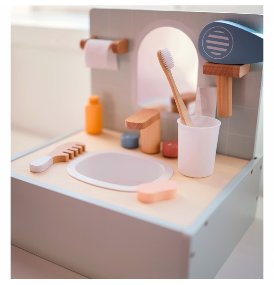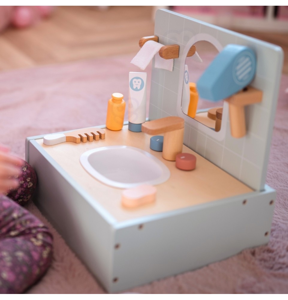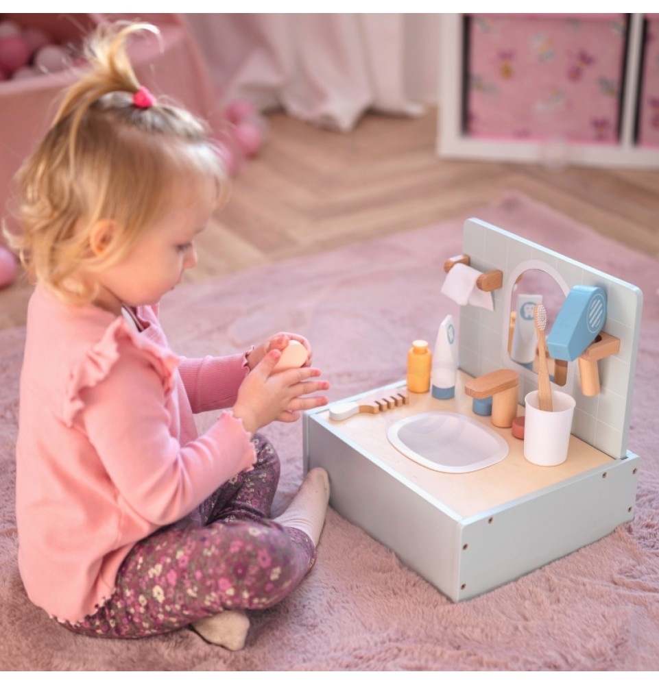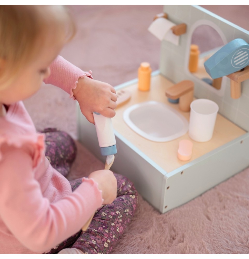 Paverskite kasdienius vonios kambario ritualus kūrybiškais žaidimais su „Tooky Toy“ tualeto ir vonios kambario rinkiniu. Šiame žavingame miniatiūriniame rinkinyje yra viskas, ko reikia vonios kambario scenoms vaidmenimis žaisti , įskaitant veidrodį , netikrų kriauklę su maišytuvu ir tikroviškų aksesuarų kolekciją . Visi daiktai sukurti taip, kad primintų tikrus vonios kambario aksesuarus, skatindami svarbių higienos įpročių ugdymą . Tualeto ir vonios kambario rinkinys yra puikus būdas lavinti kūrybiškumą ir mokytis kasdienių įpročių, tuo pačiu suteikiant unikalų papildymą vaikų žaidimams.