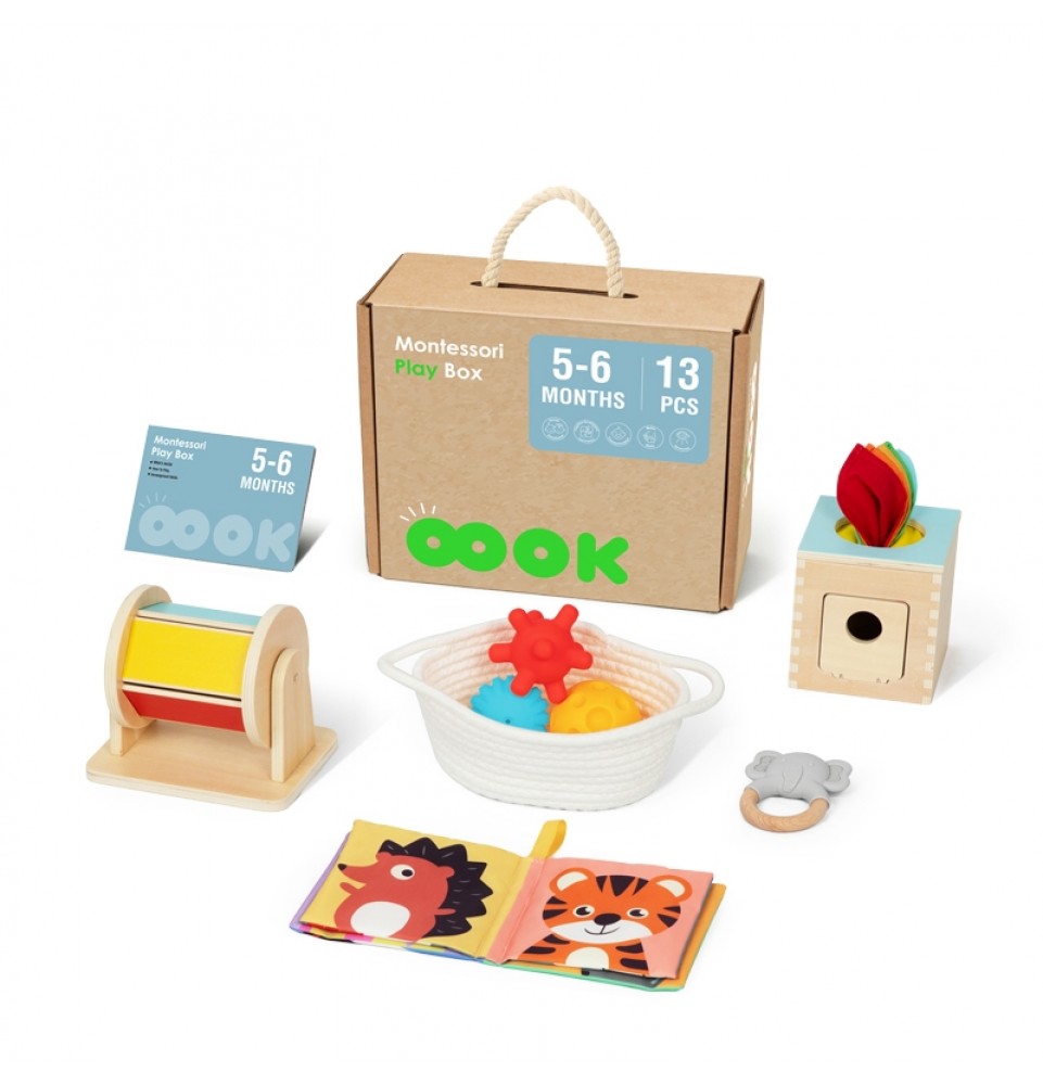 „Tooky“ žaislų lavinamoji dėžutė skirta 3–5 mėnesių kūdikiams. Joje yra penki Montessori sensoriniai ir lavinamieji žaislai , kurie palaiko sveiką vaiko psichomotorinį vystymąsi ir stimuliuoja jo pojūčius : regą, lytėjimą ir klausą . Ji taip pat lavina loginį mąstymą ir akių bei rankų koordinaciją . Taip pat yra išsamus vadovas tėvams, kuris parodys, kada pristatyti žaislą kūdikiui ir kaip su juo žaisti. „Tooky“ žaislų lavinamoji dėžutė yra puiki dovana kūdikiui. Rinkinyje yra naudojimo instrukcija, kurioje pateikiama informacija apie dėžutės turinį, žaislų naudojimo instrukcijos ir naudingi patarimai.