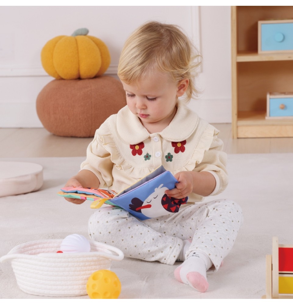 Vaikai mėgsta žiūrėti į spalvingas knygeles, ypač tas, kurios turi girgždančių ir garsus skleidžiančių elementų. Rinkinyje esanti minkšta knygelė pateisins šiuos lūkesčius , skatindama sensorinį tyrinėjimą, regimąjį atpažinimą, bendravimą ir kūrybiškumą. Girgždantys puslapiai ir cypiantys elementai stimuliuoja klausą, skatina garsų žaismą, o ryškios, kontrastingos spalvos ir iliustracijos patraukia vaiko dėmesį , skatindamos regimąjį suvokimą. Knygelė išsiskiria kruopščiu meistriškumu, tvirtomis siūlėmis ir patvarumu.
