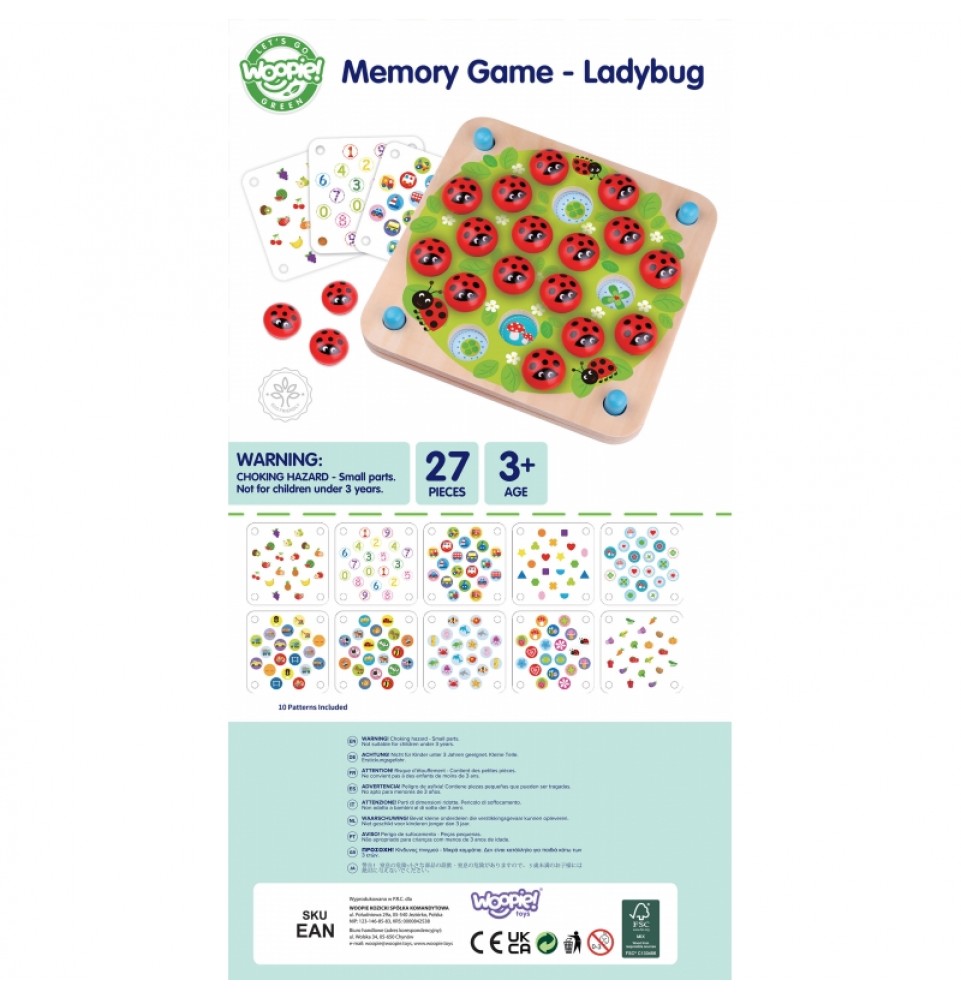 „MEMORY by WOOPIE GREEN“ – tai nuostabus lavinamasis žaidimas, kuris skatina vaikus smagiai ir įtraukiančiai lavinti atmintį , susikaupimą ir stebėjimo įgūdžius . Rinkinį sudaro 10 kortelių su skirtingomis temomis, leidžiančių pritaikyti sudėtingumo lygį prie vaiko amžiaus ir įgūdžių lygio. Žaidimas puikiai tinka tiek žaidimui vienam, tiek pramogoms su šeima . Pagamintas iš aukštos kokybės medžiagų ir dažytas netoksiškais dažais, jis garantuoja saugumą ir patvarumą. „MEMORY“ yra ne tik puiki pramoga – tai protinė mankšta ir puiki priemonė vaiko vystymuisi remti.