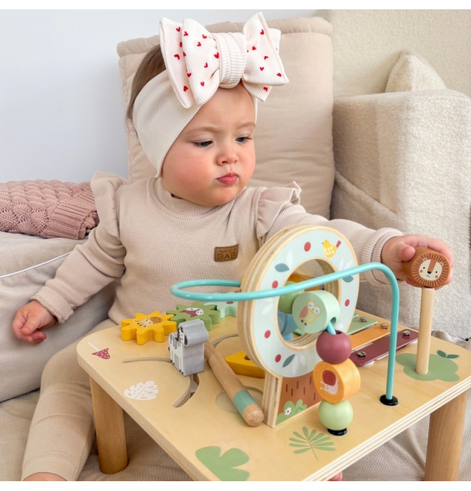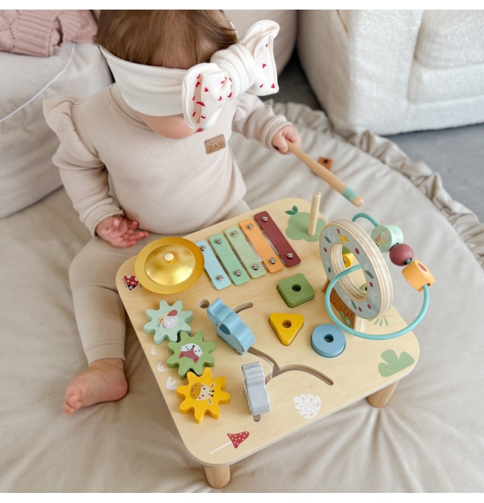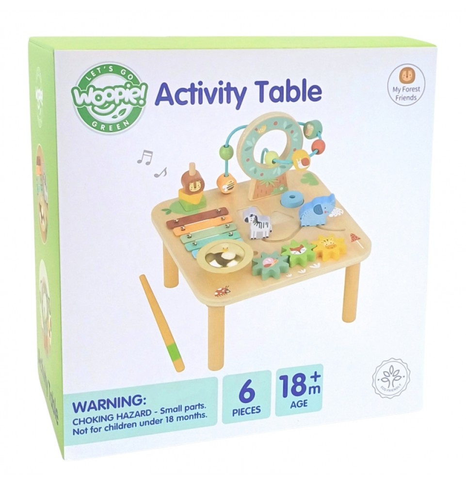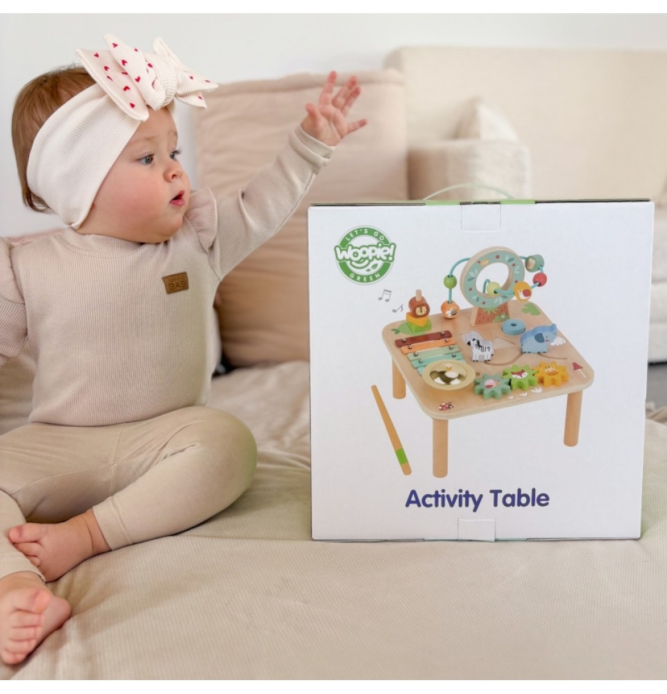 WOOPIE GREEN veiklos stalas yra unikalus žaislas, kuris derina edukaciją su pramogomis , palaikydamas visapusišką vaiko vystymąsi. Naudojant Montessori elementus, mažyliai gali lavinti motorinius įgūdžius , loginį mąstymą ir rankų bei akių koordinaciją žaisdami savo amžiui tinkamu būdu. Gražios pastelinės spalvos ir natūrali mediena daro stalą ne tik vizualiai patrauklų, bet ir saugų bei tinkamą vaikui .