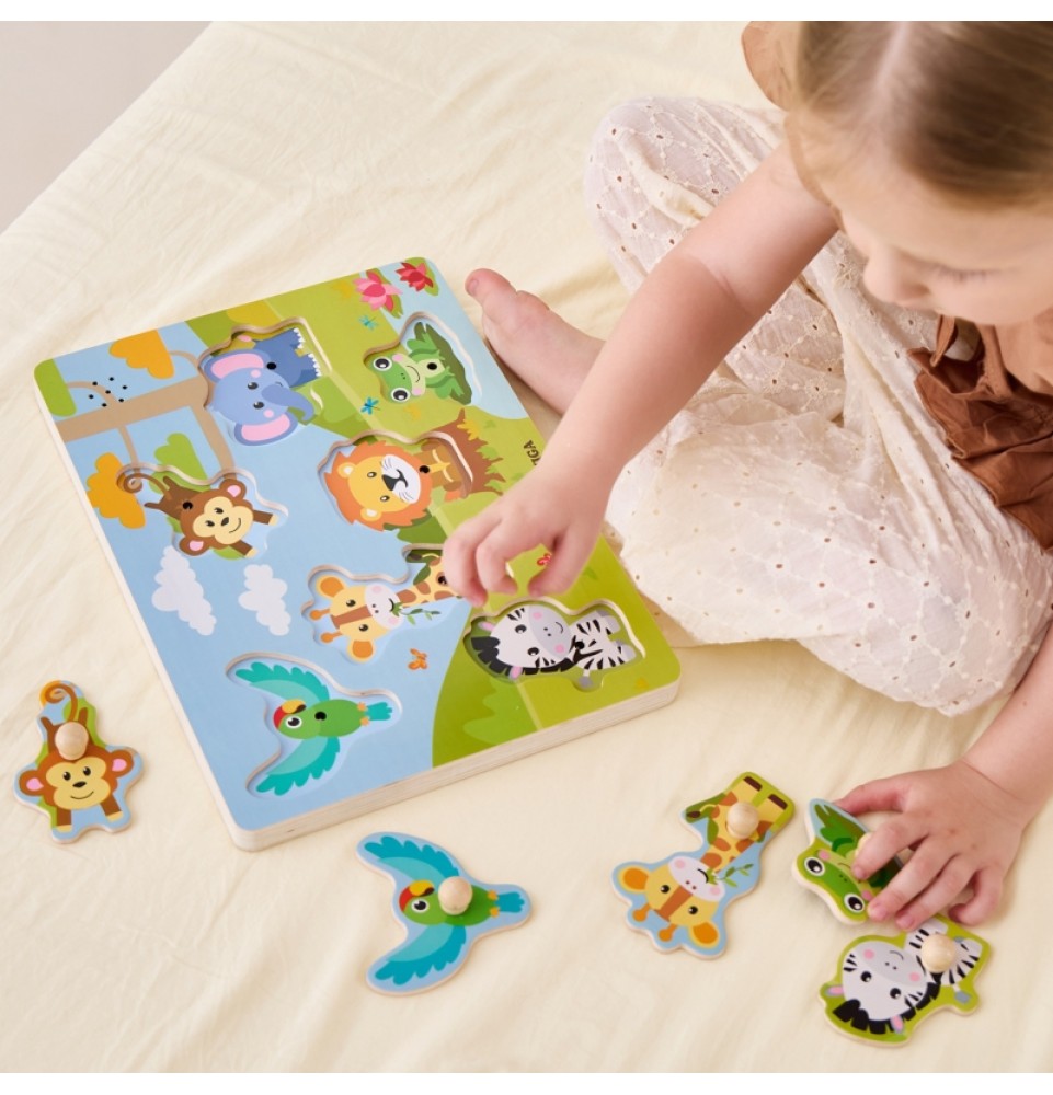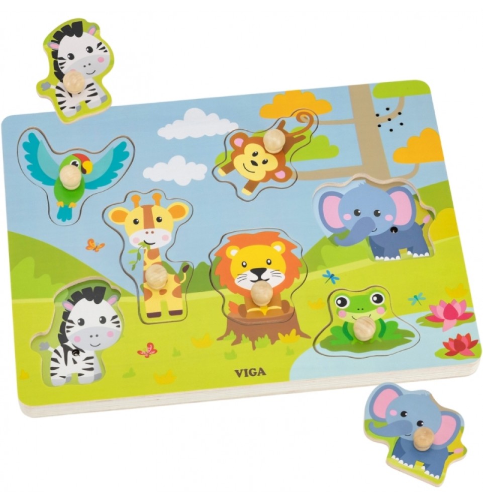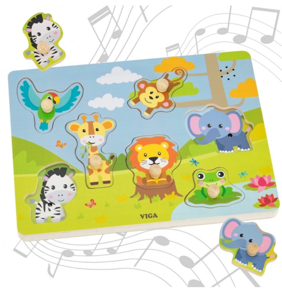 VIGA egzotiškų gyvūnų garsų dėlionė padės jums atrasti žavų džiunglių gyvūnų pasaulį. Ši lavinamoji dėlionė yra puikus būdas lavinti jūsų vaiko rankinius ir pažintinius įgūdžius. Kai paimsite ir vėl sujungsite detalę, jūsų vaikas išgirs tikrovišką gyvūno garsą, sustiprinantį patirtinį mokymąsi. Puikiai tinka mažiesiems tyrinėtojams, kurie mėgsta interaktyvų mokymąsi.
