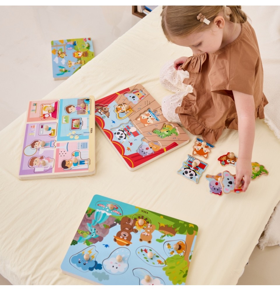 „Viga“ siūlo daugybę skirtingų žaislų, skirtų lavinti vaikų motorinius, pažintinius ir socialinius įgūdžius. Jų asortimente rasite: