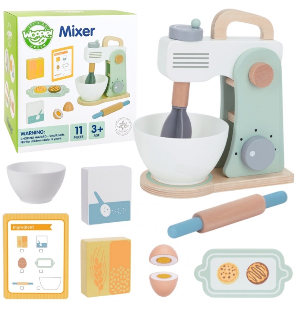 Pastelinis maišytuvas iš WOOPIE GREEN serijos yra puikus žaislas mažiesiems maisto gaminimo entuziastams ! Šis žavus žaislas ne tik suteiks vaikams daugybę pramogų, bet ir leis jiems apsimesti tikrais konditerių virėjais ar konditeriais.