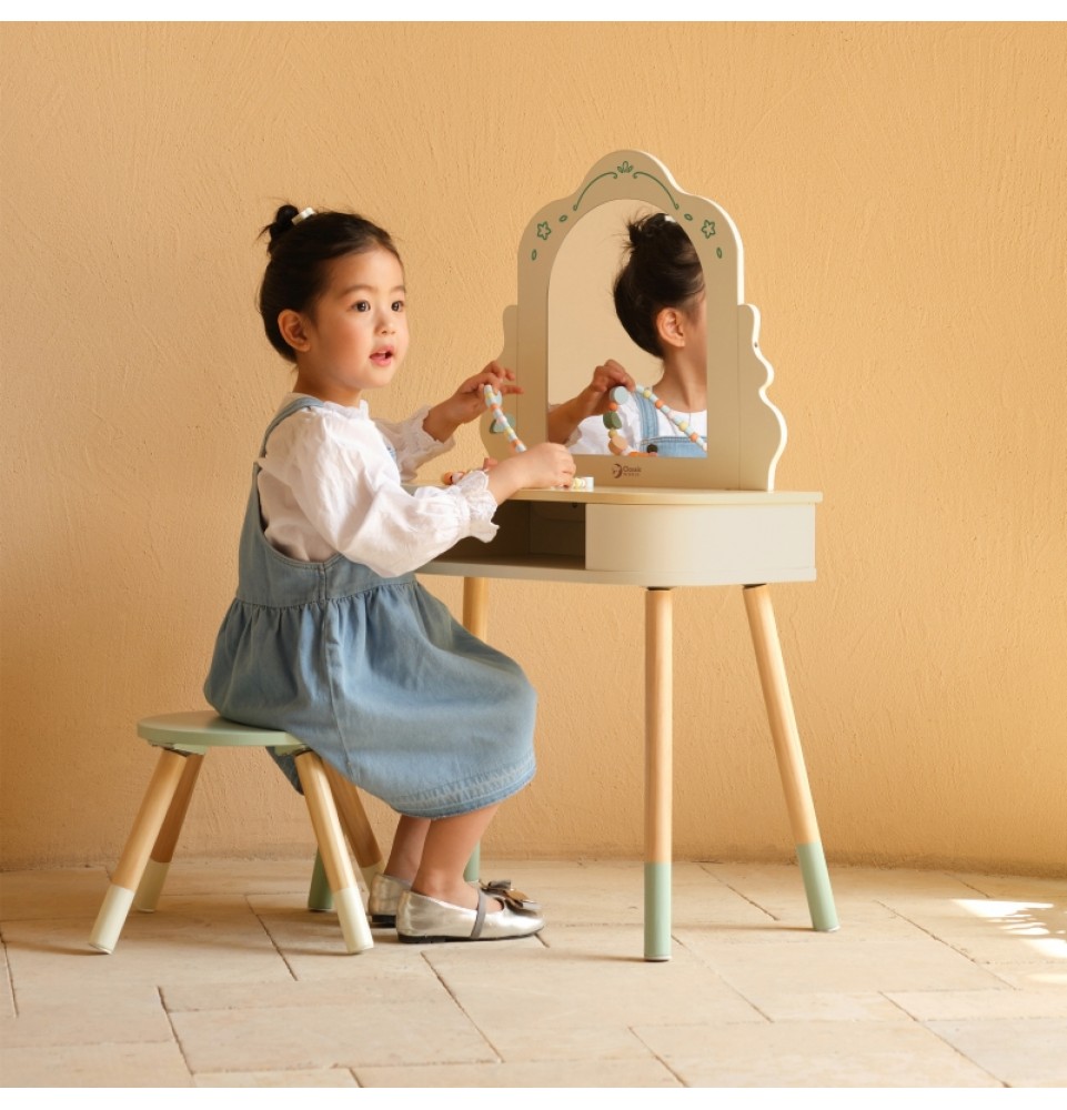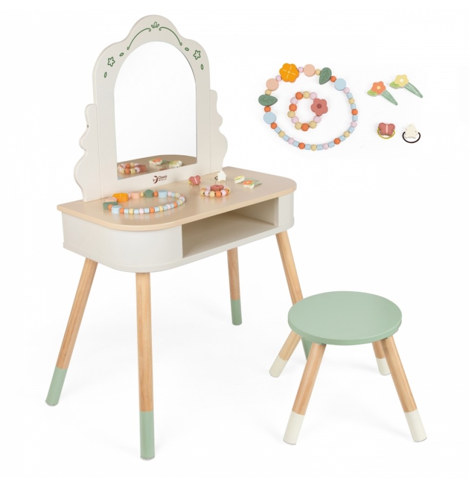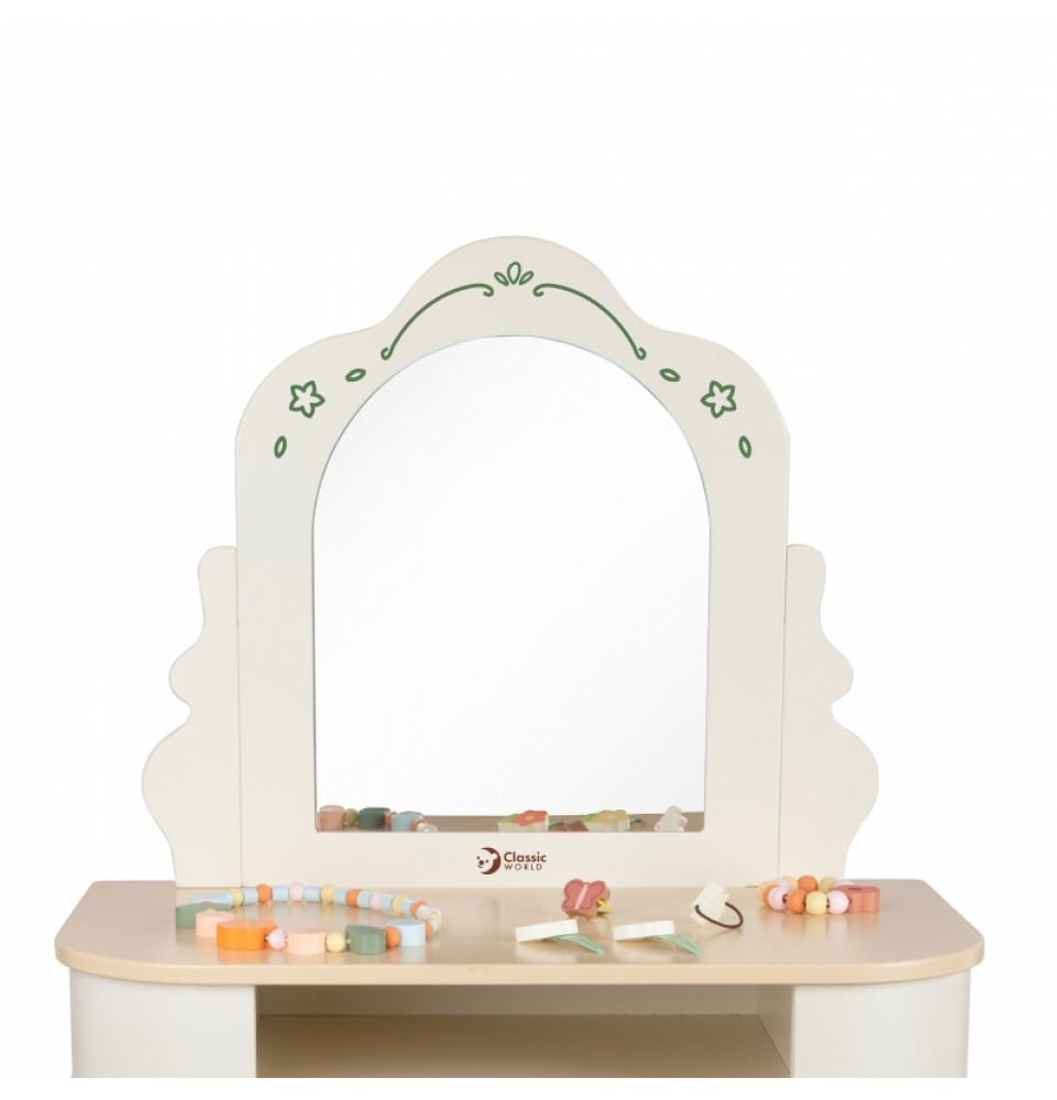 „Classic World“ tualetinis staliukas su veidrodžiu buvo sukurtas specialiai mažoms mergaitėms, kurios svajoja apie savo kosmetikos kampelį ir mėgsta puoštis. Rinkinį sudaro apvali taburetė, veidrodis ir įvairūs aksesuarai, tokie kaip apyrankė, plaukų segtukai ir vėrinys. Šis tualetinis staliukas leidžia vaikams lavinti vaizduotę, mėgdžioti suaugusiuosius ir smagiai leisti laiką, lavinant smulkiąją motoriką .