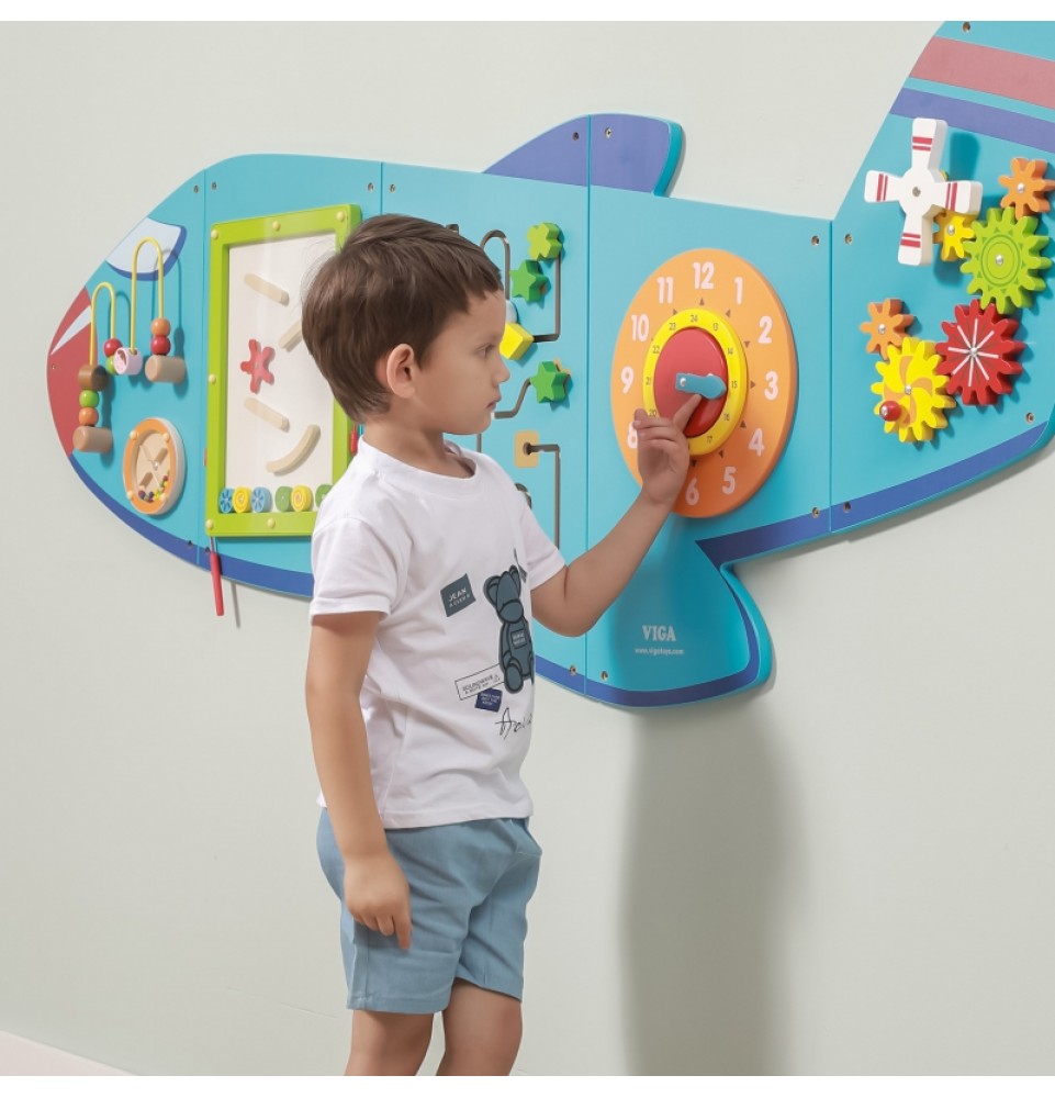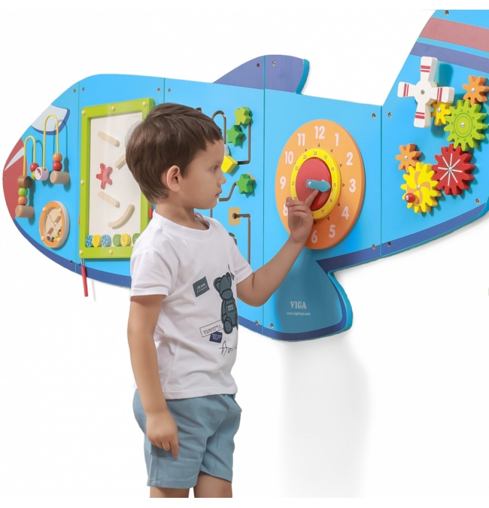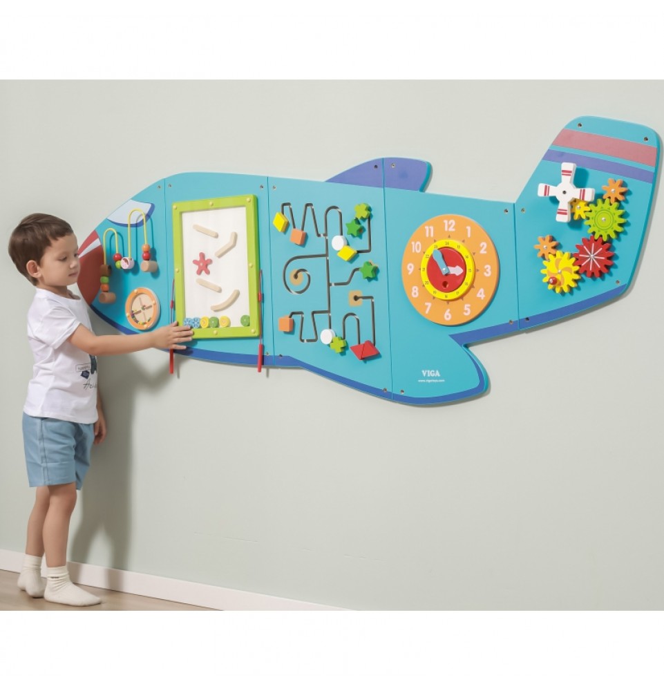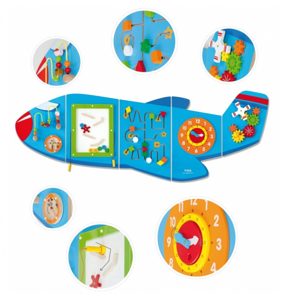 „Viga Airplane XL“ yra medinis, daugiafunkcis sieninis žaislas. Jį sudaro penki elementai, kurie, sujungti kartu, sukuria lėktuvą. Kiekvienas elementas suteikia vaikams skirtingą veiklos rūšį. Jį sudaro labirintas, variklio kilpa, mini čiuožykla, laikrodis su judančiomis rodyklėmis ir spalvingos, judančios krumpliaračiai.