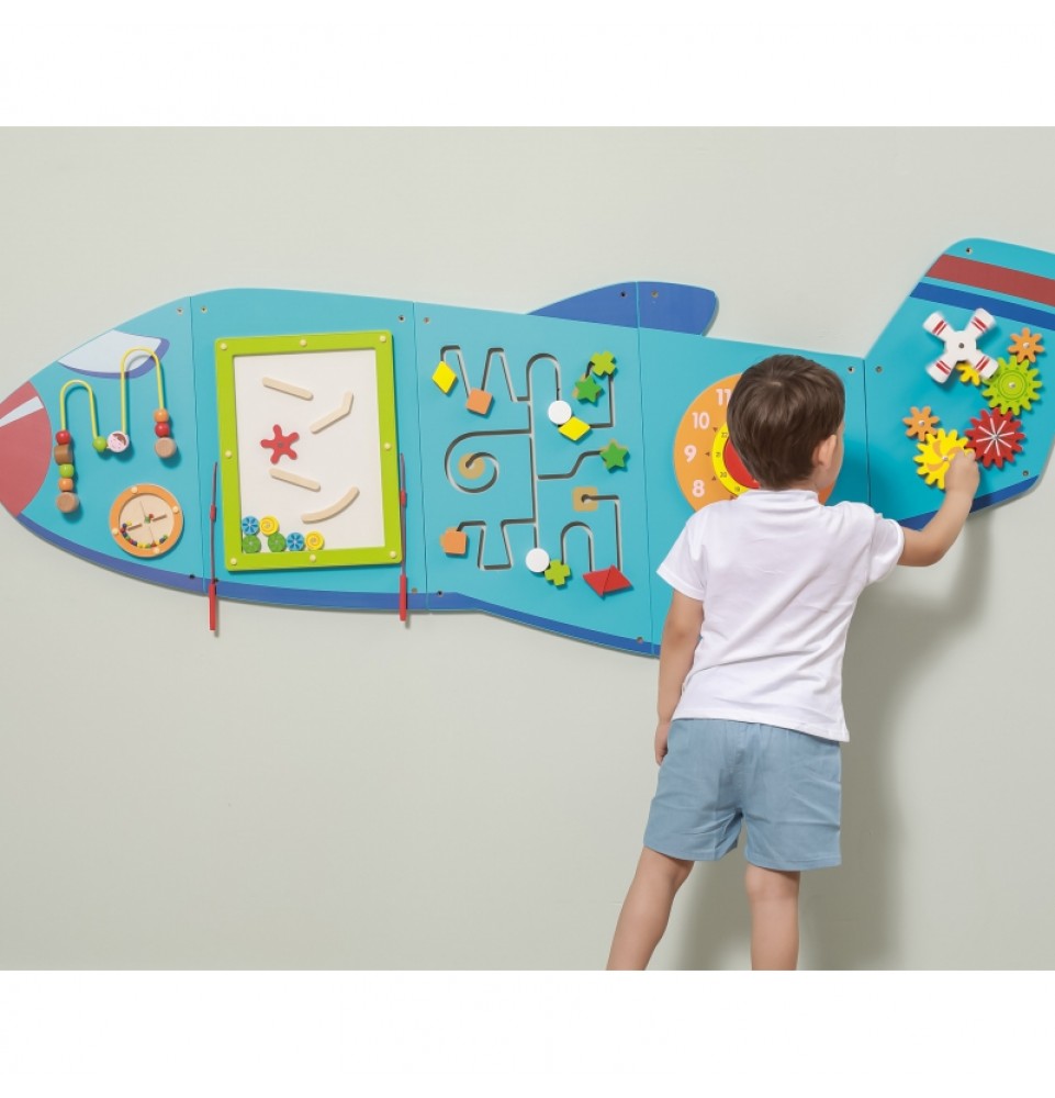 Dėl didelio dydžio lėktuvėlis puikiai tinka darželiams, ikimokyklinėms įstaigoms, mokykloms ir viešosioms erdvėms. Žaislo tvirtinimas prie sienos taupo grindų plotą.