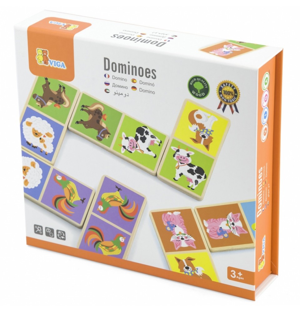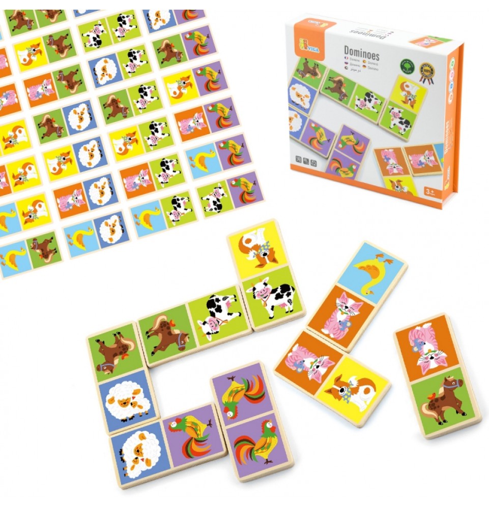 Vaikų pamėgtas prekės ženklas „Viga Toys“ sukūrė klasikinio „Domino Farm“ žaidimo versiją patiems mažiausiems. Šis žaidimas atitinka Montessori principus – mokymosi per žaidimą. Spalvingos nuotraukos su mielais gyvūnais leidžia lengvai suderinti žaislus. Visas rinkinys supakuotas kompaktiškoje kartoninėje dėžutėje, kuri užima mažai vietos. Jis puikiai tinka pasiimti į kelionę ar iškylą, be to, padeda palaikyti tvarką žaidimų aikštelėje po žaidimo.