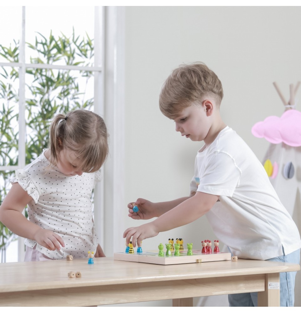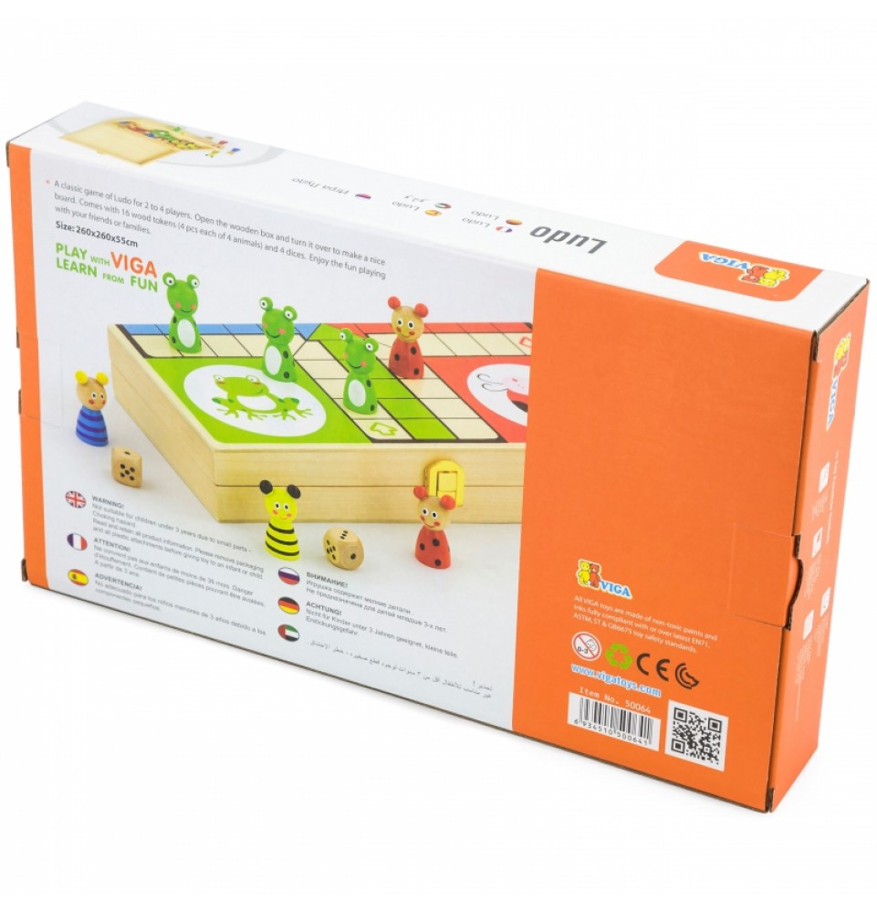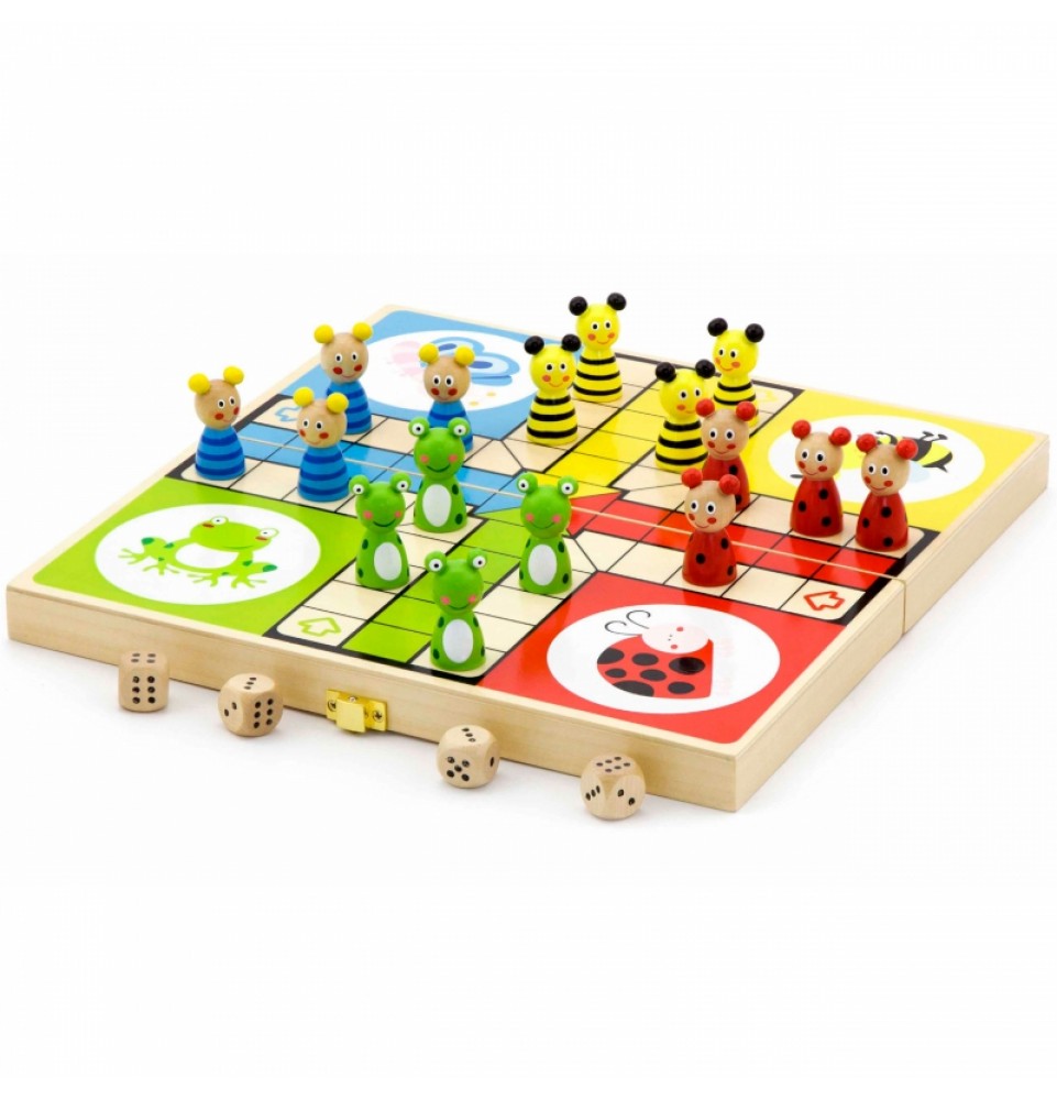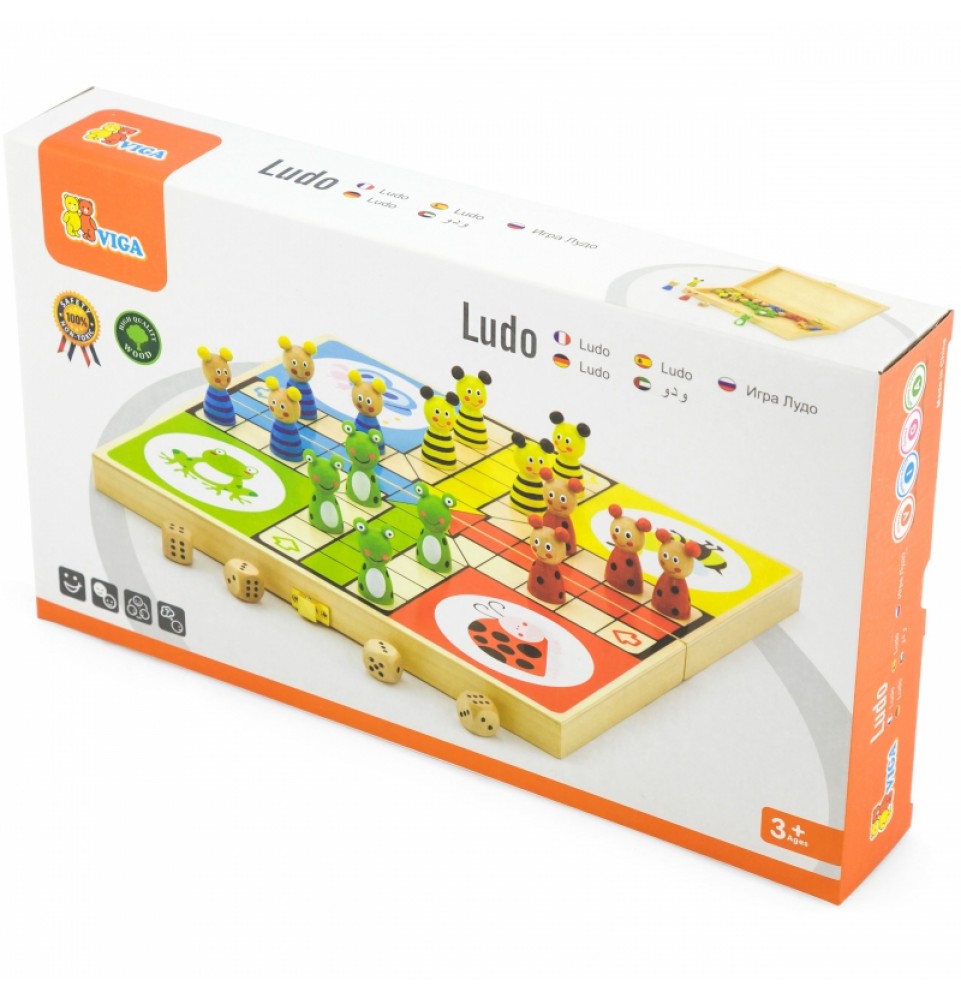 Stalo žaidimas „Ludo“ yra gerai žinomas vaikams ir suaugusiems visame pasaulyje. „Viga“ sukūrė visiškai naują versiją, kuri sužavės mažuosius. Rinkinį sudaro keturi kauliukai, stalo žaidimo dėžutė ir šešiolika gražiai pagamintų figūrėlių, vaizduojančių varles, bites, boružes ir drugelius.