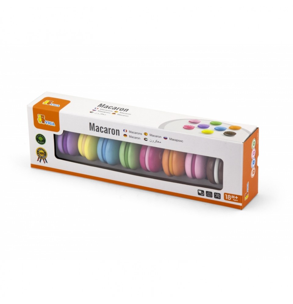„Viga PolarB“ medinių macaronų rinkinys yra vienas iš pirmaujančių žaislų, leisiančių vaikams pasinerti į įtraukiančio ir kūrybiško žaidimo pasaulį. Macaronų gabalėliai yra pritvirtinti vienas prie kito lipdukais, todėl vaikai gali juos derinti bet kokiu norimu būdu, kurdami savo „skanėstus“.